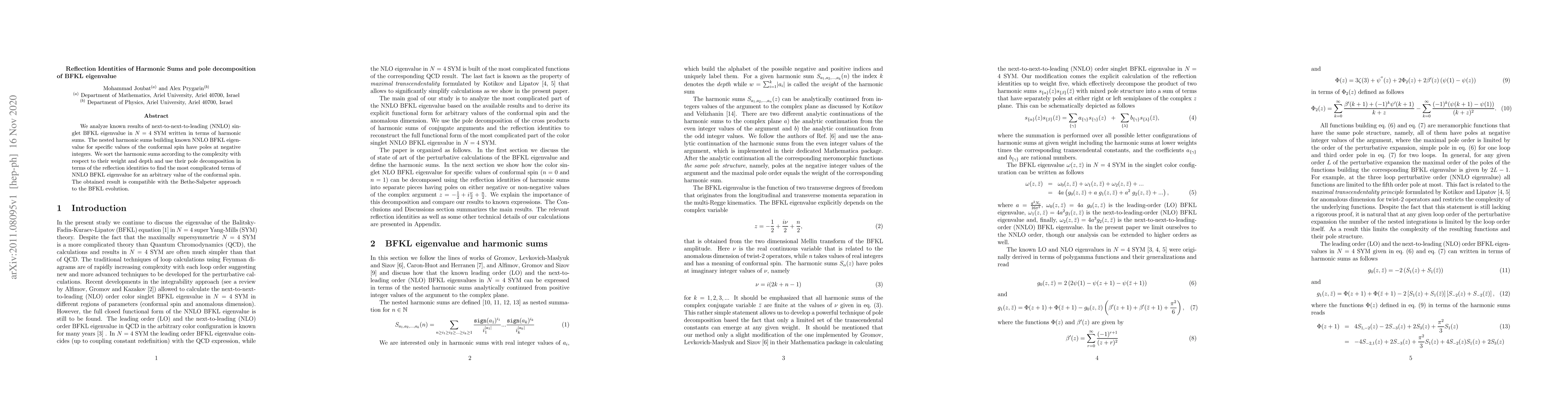 Researchers analyzed harmonic sums to find the most complicated terms of NNLO BFKL eigenvalue for an arbitrary conformal spin, revealing poles at negative integers and compatibility with the Bethe-Salpeter approach.