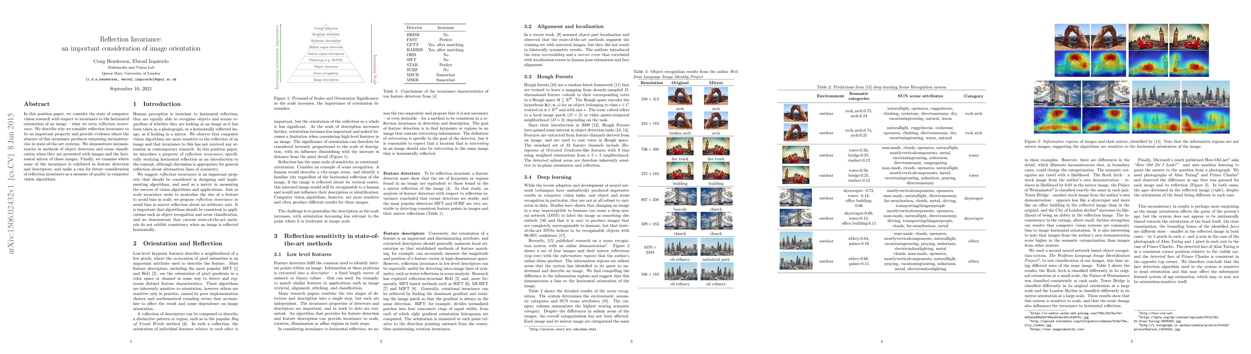 In this position paper, we consider the state of computer vision research with respect to invariance to the horizontal orientation of an image -- what we term reflection invariance. We describe why we consider reflection invariance to be an important property and provide evidence where the absence of this invariance produces surprising inconsistencies in state-of-the-art systems. We demonstrate inconsistencies in methods of object detection and scene classification when they are presented with images and the horizontal mirror of those images. Finally, we examine where some of the invariance is exhibited in feature detection and descriptors, and make a case for future consideration of reflection invariance as a measure of quality in computer vision algorithms.