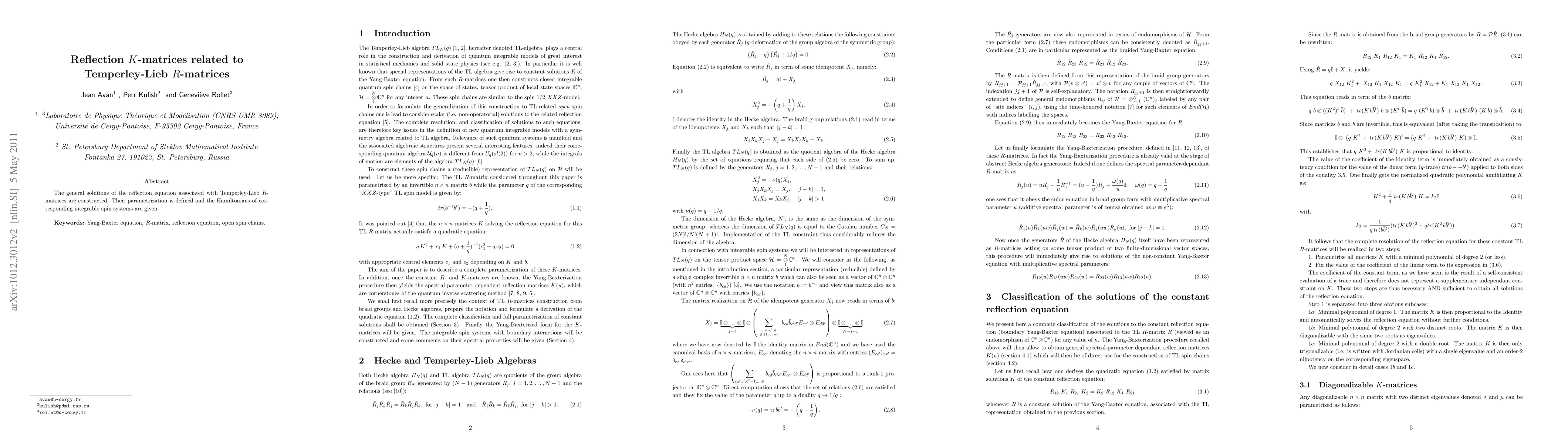 This paper constructs general solutions to the reflection equation linked to Temperley-Lieb $R$-matrices, providing a parametrization and detailing the Hamiltonians for associated integrable spin systems.