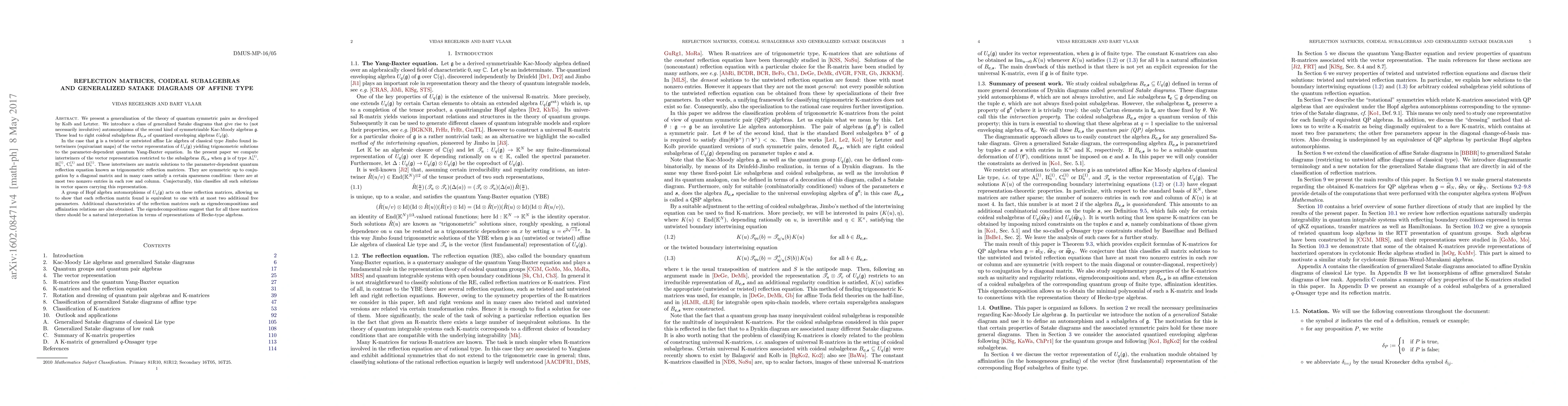 This paper generalizes the theory of quantum symmetric pairs to symmetrizable Kac-Moody algebras, introducing generalized Satake diagrams and computing trigonometric reflection matrices as intertwiners for vector representations of quantized enveloping algebras in types A, B, C, and D. These matrices are conjectured to classify solutions to the quantum reflection equation and possess sparseness and eigendecomposition properties, suggesting connections to representations of Hecke-type algebras.