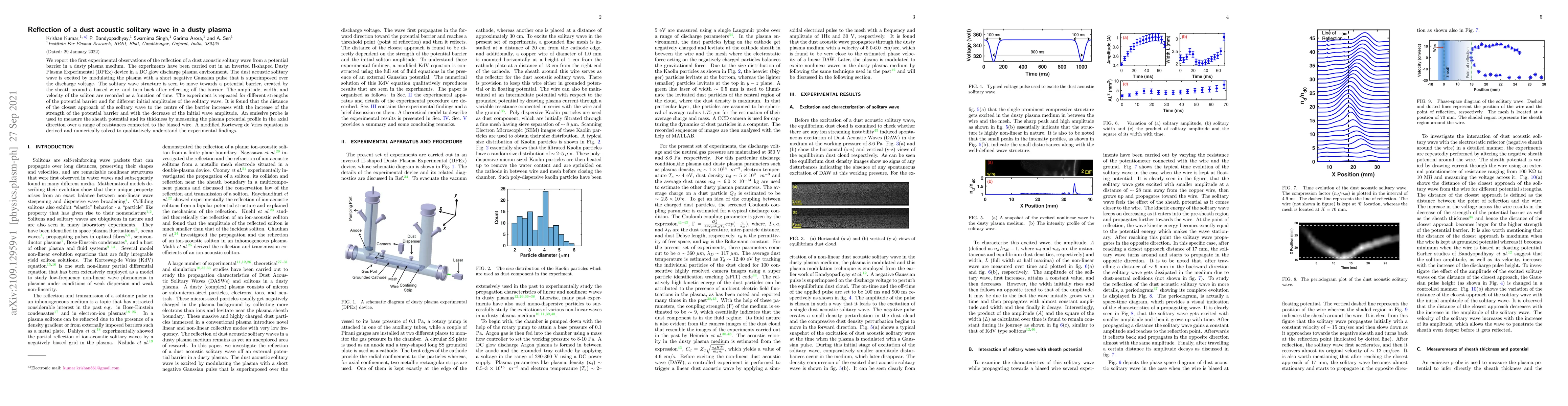 This paper reports experimental observations of dust acoustic solitary waves reflecting off a potential barrier in a dusty plasma, using a DPEx device. The study finds that the solitary wave's closest approach to the barrier increases with barrier strength and decreases with initial wave amplitude, and uses a modified Korteweg de Vries equation to model the findings.
