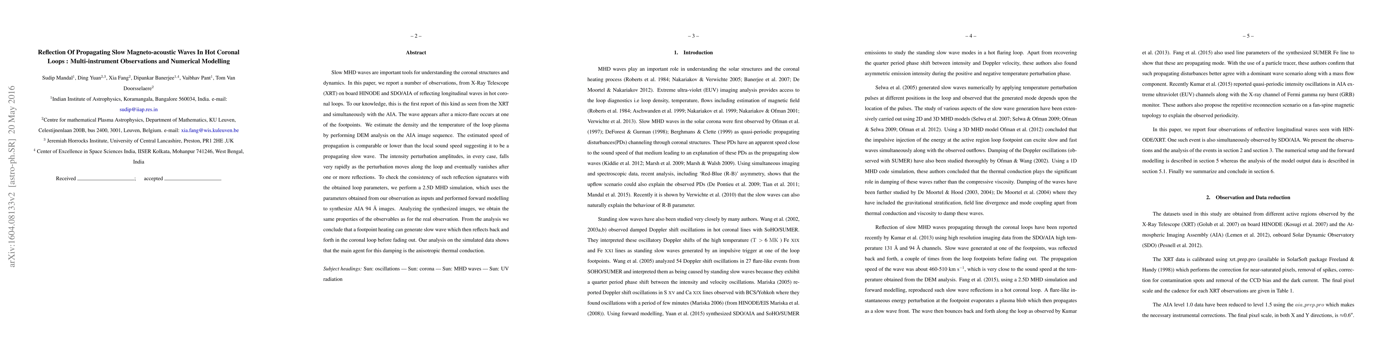 This paper reports observations of reflecting slow magneto-acoustic waves in hot coronal loops using XRT and AIA instruments, noting the rapid decay of wave intensity. Numerical simulations confirm these reflections and suggest anisotropic thermal conduction as the primary damping mechanism.