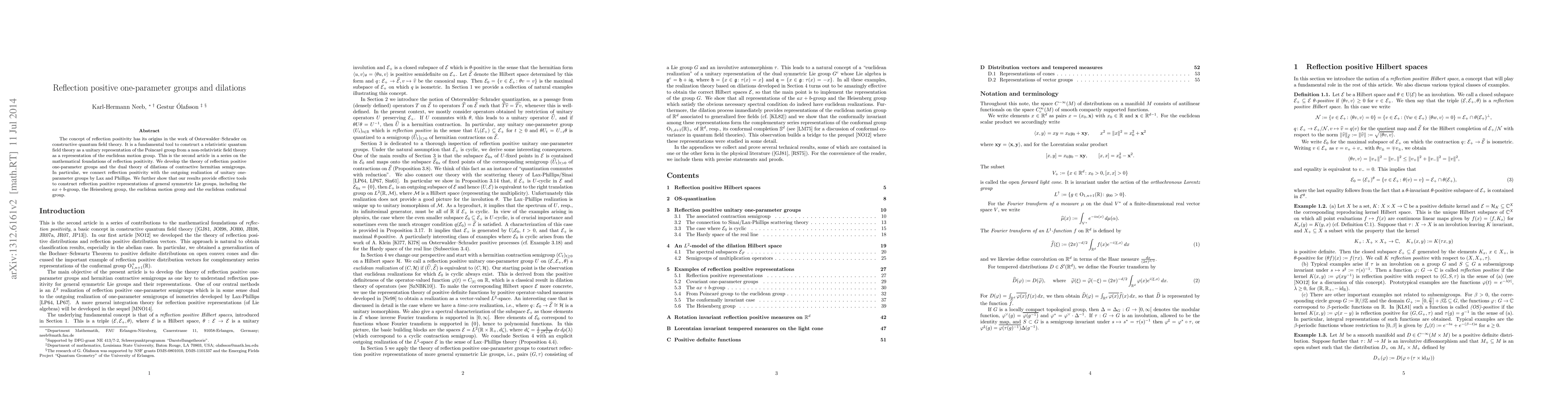 This paper develops the theory of reflection positive one-parameter groups and dilations, connecting these concepts to the outgoing realization of unitary one-parameter groups. It provides tools for constructing reflection positive representations of various symmetric Lie groups, including the ax+b-group and the Heisenberg group.