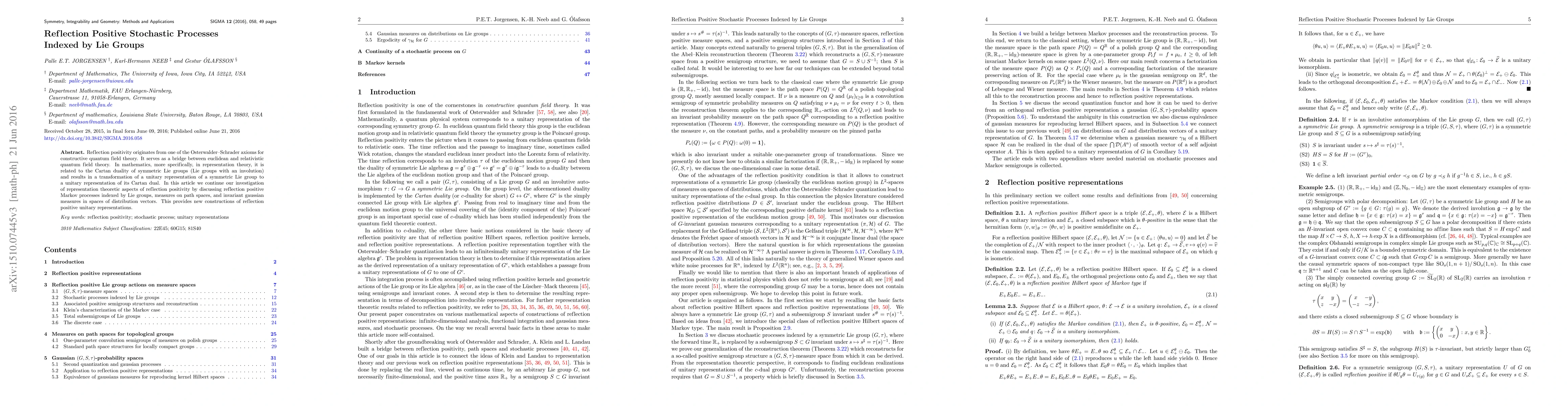 This paper explores the representation theory of reflection positivity, focusing on Markov processes indexed by Lie groups and invariant Gaussian measures. It aims to construct new reflection positive unitary representations through the study of measures on path spaces and the Cartan duality of symmetric Lie groups.
