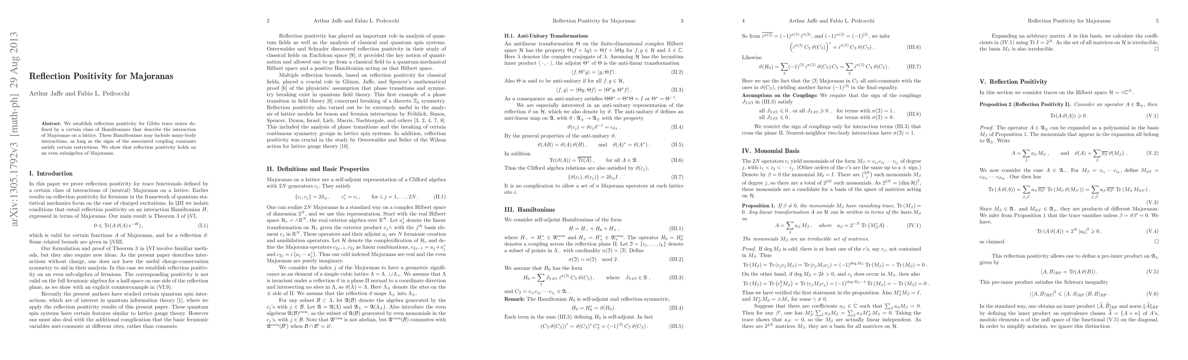 Summary: The paper establishes reflection positivity for Gibbs trace states involving Majoranas on a lattice, demonstrating that it holds under specific restrictions on the signs of coupling constants, particularly within an even subalgebra of Majoranas.