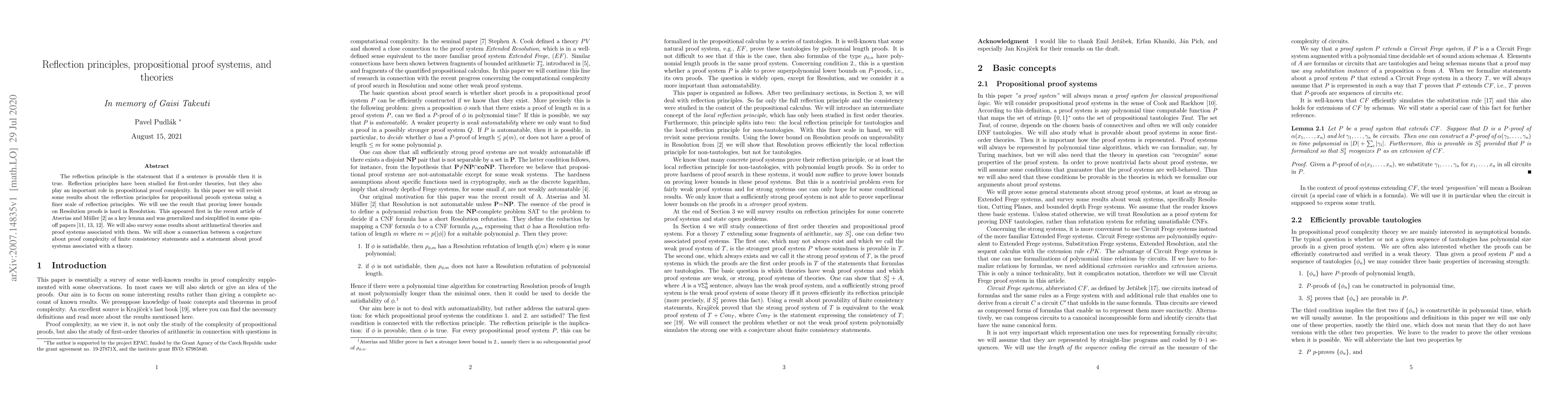 This paper explores refined reflection principles in propositional proof systems, emphasizing the difficulty of proving lower bounds in Resolution proofs. It also surveys connections between arithmetical theories and their associated proof systems, linking a proof complexity conjecture to statements about these systems.