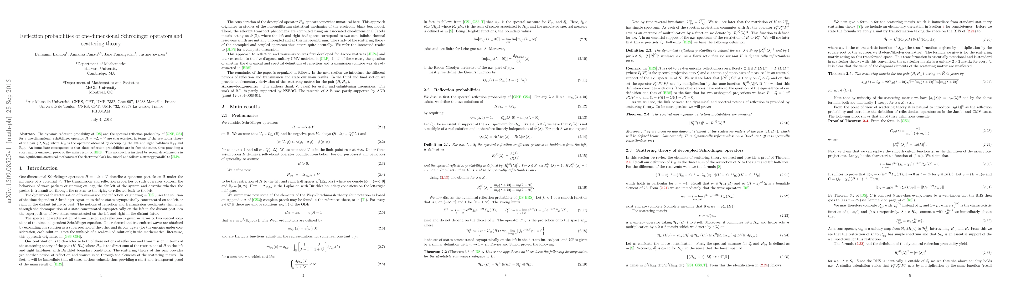 Researchers characterized reflection probabilities in one-dimensional Schroedinger operators using scattering theory, finding they are equivalent to a previous result, providing a simplified proof.