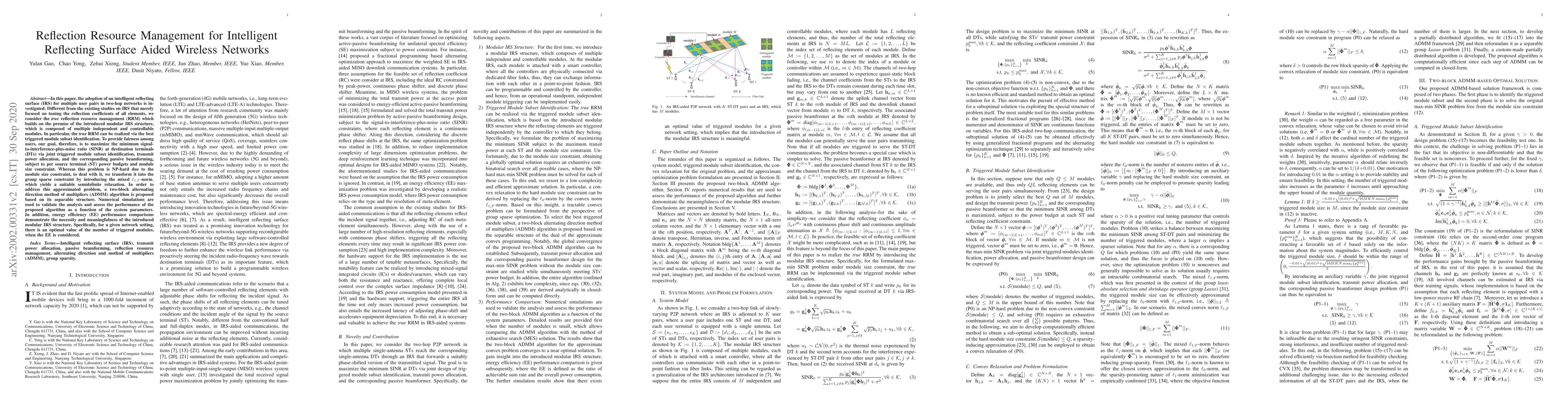 In this paper, the adoption of an intelligent reflecting surface (IRS) for multiple single-antenna source terminal (ST)-DT pairs in two-hop networks is investigated. Different from the previous studies on IRS that merely focused on tuning the reflection coefficient of all the reflection elements at IRS, in this paper, we consider the true reflection resource management. Specifically, the true reflection resource management can be realized via trigger module selection based on our proposed IRS architecture that all the reflection elements are partially controlled by multiple parallel switches of controller. As the number of reflection elements increases, the true reflection resource management will become urgently needed in this context, which is due to the non-ignorable energy consumption. Moreover, the proposed modular architecture of IRS is designed to make the reflection elements part independent and controllable. As such, our goal is to maximize the minimum signal-to-interference-plus-noise ratio (SINR) at DTs via a joint trigger module subset selection, transmit power allocation of STs, and the corresponding passive beamforming of the trigger modules, subject to per ST power budgets and module size constraint. Whereas this problem is NP-hard due to the module size constraint, to deal with it, we transform the hard module size constraint into the group sparse constraint by introducing the mixed row block norm, which yields a suitable semidefinite relaxation. Additionally, the parallel alternating direction method of multipliers (PADMM) is proposed to identify the trigger module subset, and then subsequently the transmit power allocation and passive beamforming can be obtained by solving the original minimum SINR maximization problem without the group sparse constraint via partial linearization for generalized fractional programs.