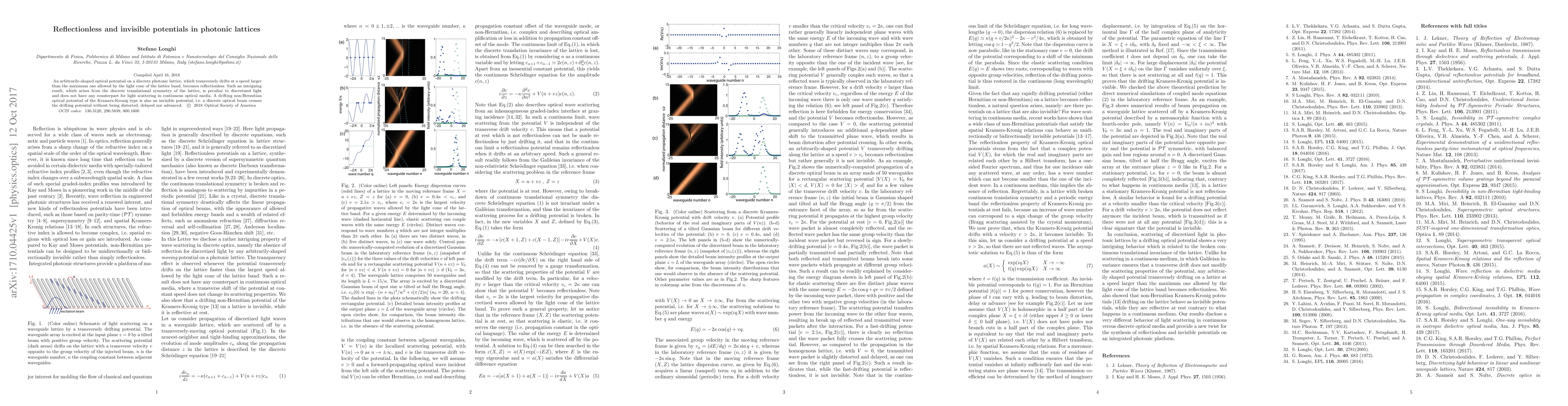 The research explores reflectionless and invisible optical potentials on discrete photonic lattices. A potential shaped arbitrarily and moving faster than the light cone's limit exhibits no reflection, a phenomenon unique to discretized light. Additionally, a non-Hermitian, Kramers-Kronig type drifting potential acts as an invisible path for optical beams, causing no distortion, delay, or advancement.