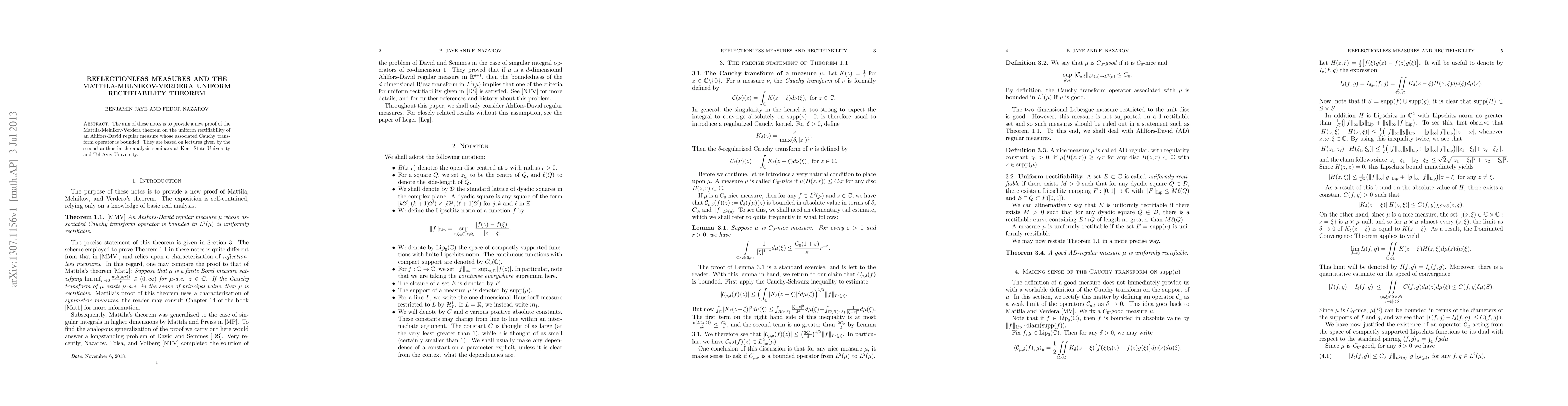 Summary: This paper presents a novel proof for the Mattila-Melnikov-Verdera theorem, establishing the uniform rectifiability of Ahlfors-David regular measures with bounded Cauchy transform operators. The focus is on reflectionless measures and their properties.