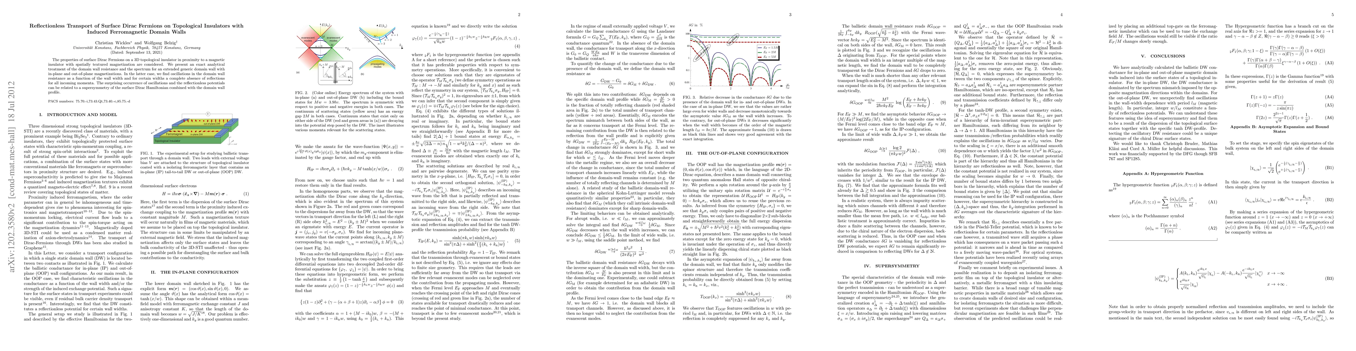 Researchers studied how surface Dirac Fermions interact with magnetic domain walls on topological insulators, finding oscillations in resistance and complete reflectionlessness for certain widths of the wall.