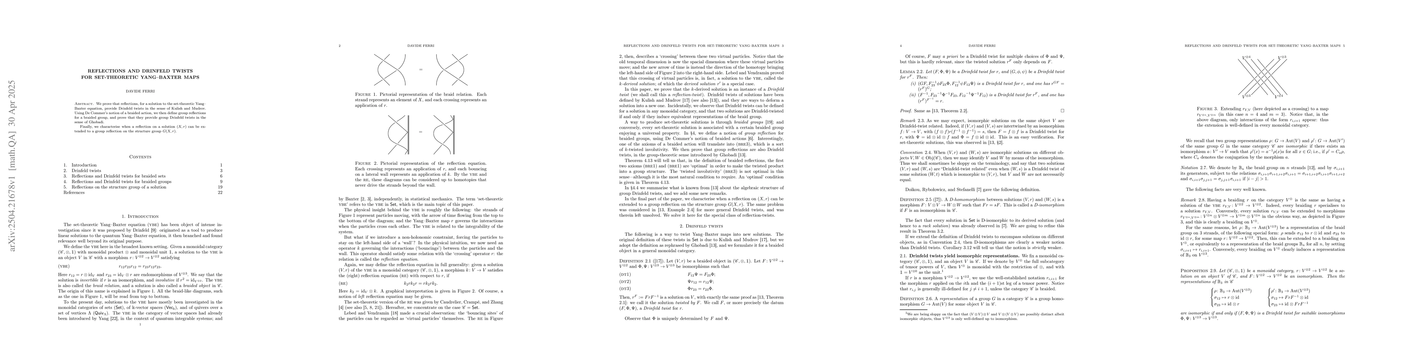 The paper introduces a link between reflections and Drinfeld twists for set-theoretic Yang-Baxter maps, utilizing braided group actions.