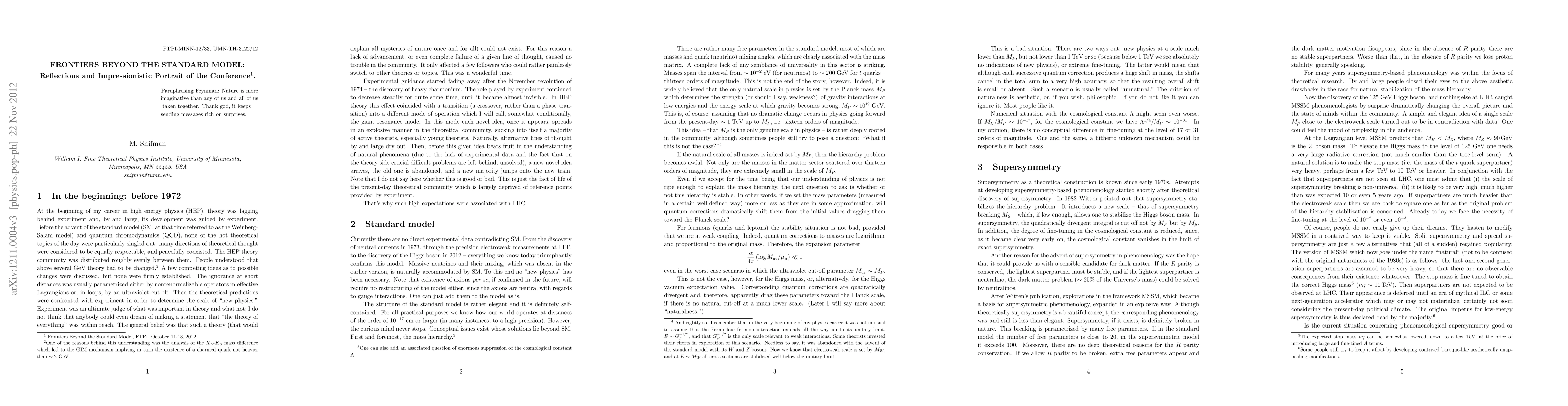 This paper provides a historical reflection on the results presented at the "Frontiers Beyond the Standard Model" conference held at FTPI in October 2012, offering insights and commentary on the discussed topics. Minor corrections and updates were made in subsequent versions to improve the text's clarity and accuracy.