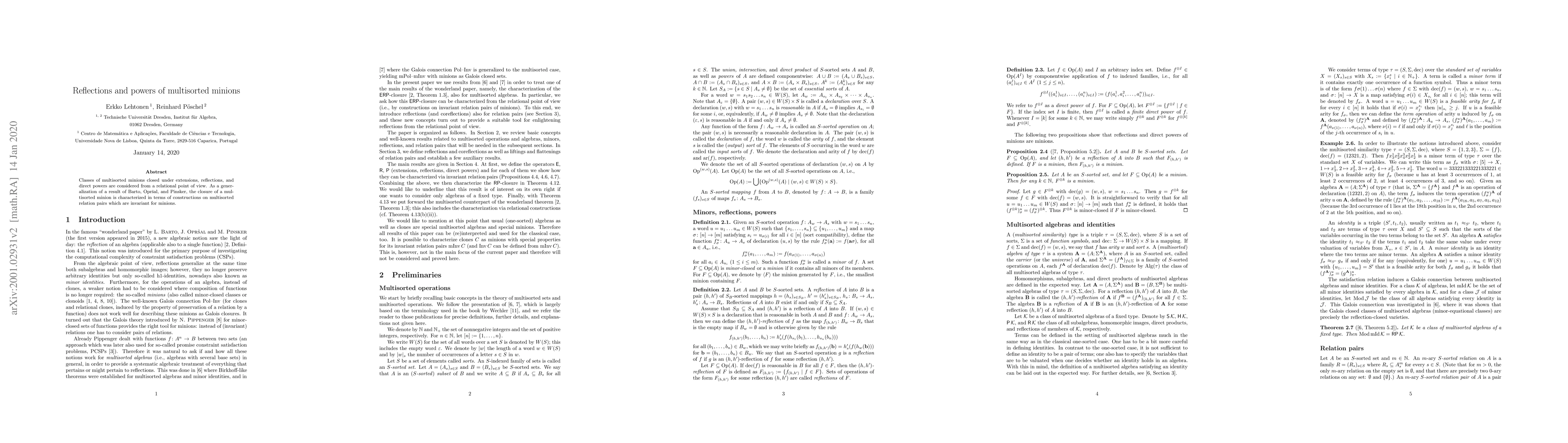 This paper explores classes of multisorted minions closed under extensions, reflections, and direct powers from a relational perspective. It generalizes a prior result by characterizing the closure of a multisorted minion through invariant constructions on multisorted relation pairs.