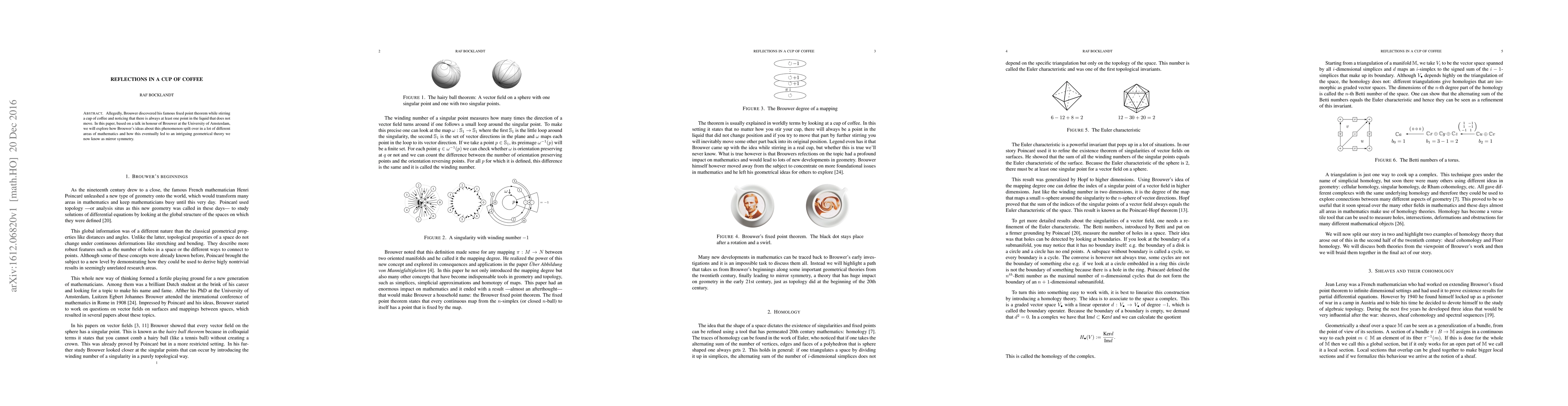 This paper explores how Brouwer's concept of fixed points in coffee inspired a geometrical theory known as mirror symmetry in mathematics, revealing its connections to various areas of math.