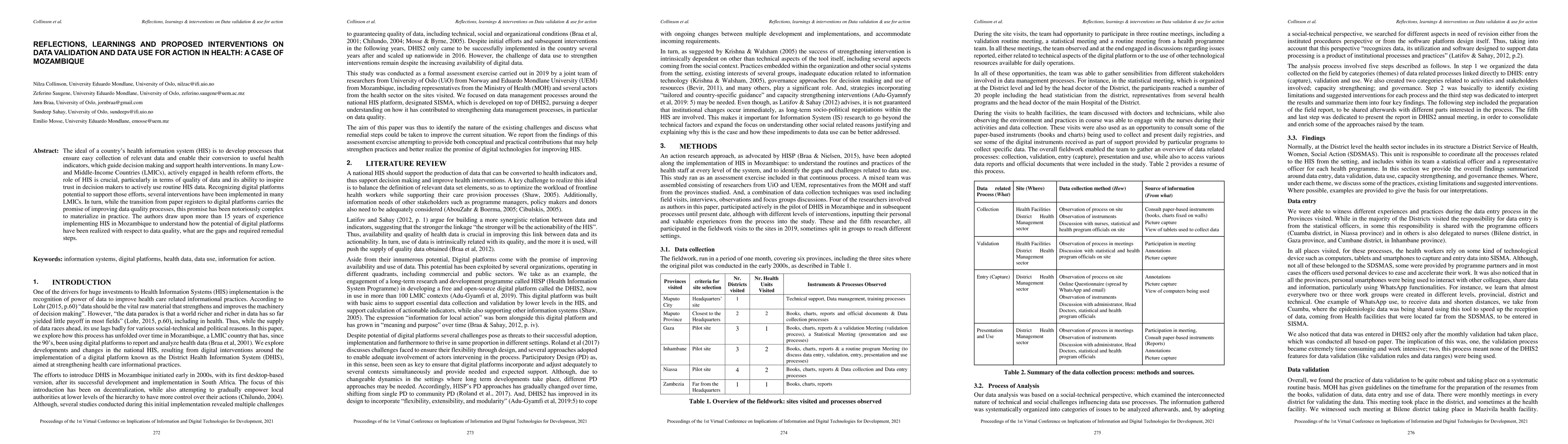 This paper reflects on Mozambique's health information system (HIS) experiences over 15 years, highlighting the challenges in transitioning from paper to digital platforms to improve data quality and use, and proposes interventions to address these issues.
