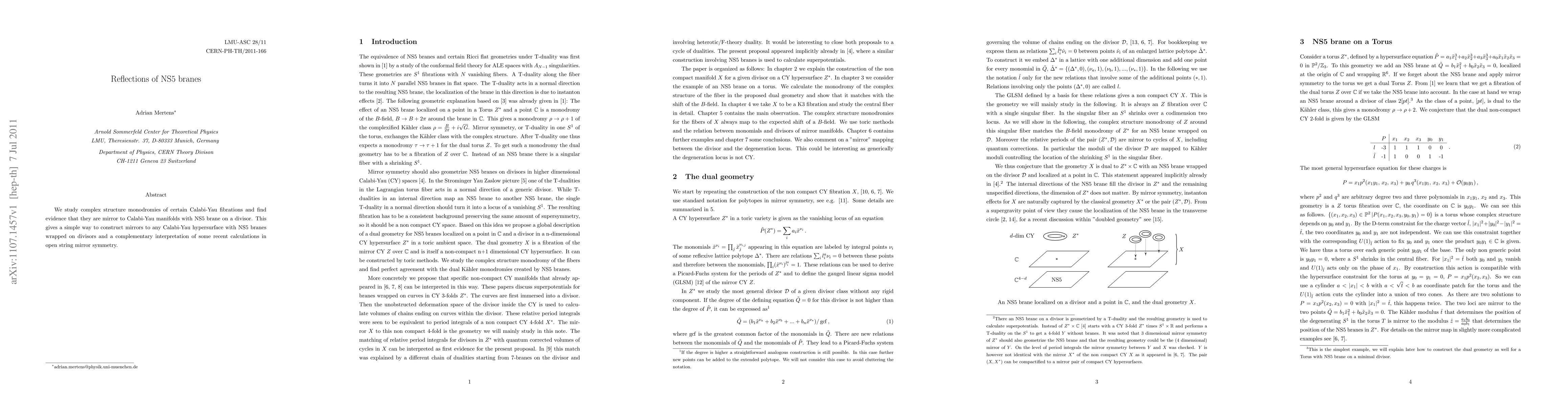 We study complex structure monodromies of certain Calabi-Yau fibrations and find evidence that they are mirror to Calabi-Yau manifolds with NS5 brane on a divisor. This gives a simple way to construct mirrors to any Calabi-Yau hypersurface with NS5 branes wrapped on divisors and a complementary interpretation of some recent calculations in open string mirror symmetry.