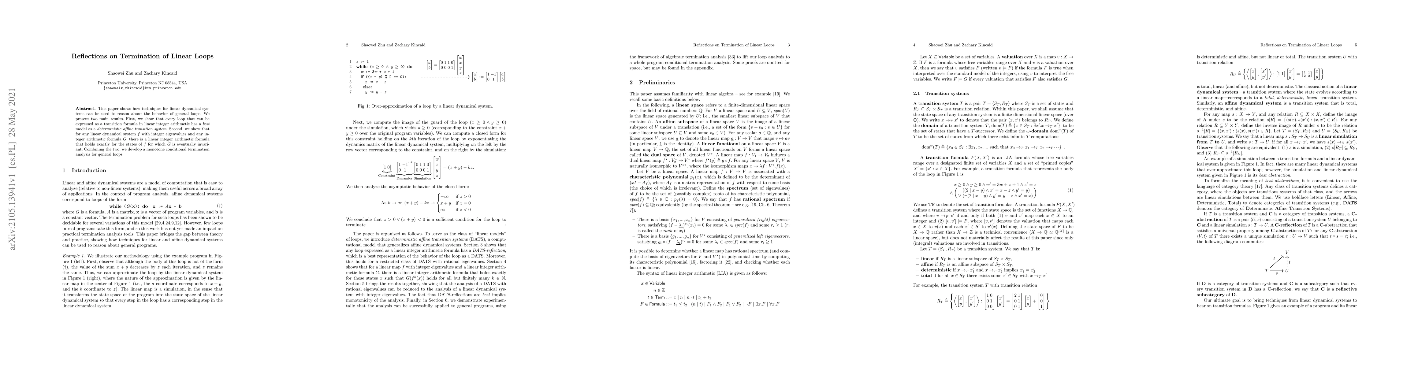 This paper demonstrates how linear dynamical systems techniques can be applied to analyze general loop behavior, proving that linear integer loops have deterministic affine transition models and that linear dynamical systems with integer eigenvalues can be checked for eventual invariance using linear integer arithmetic. It culminates in a monotone conditional termination analysis for general loops.