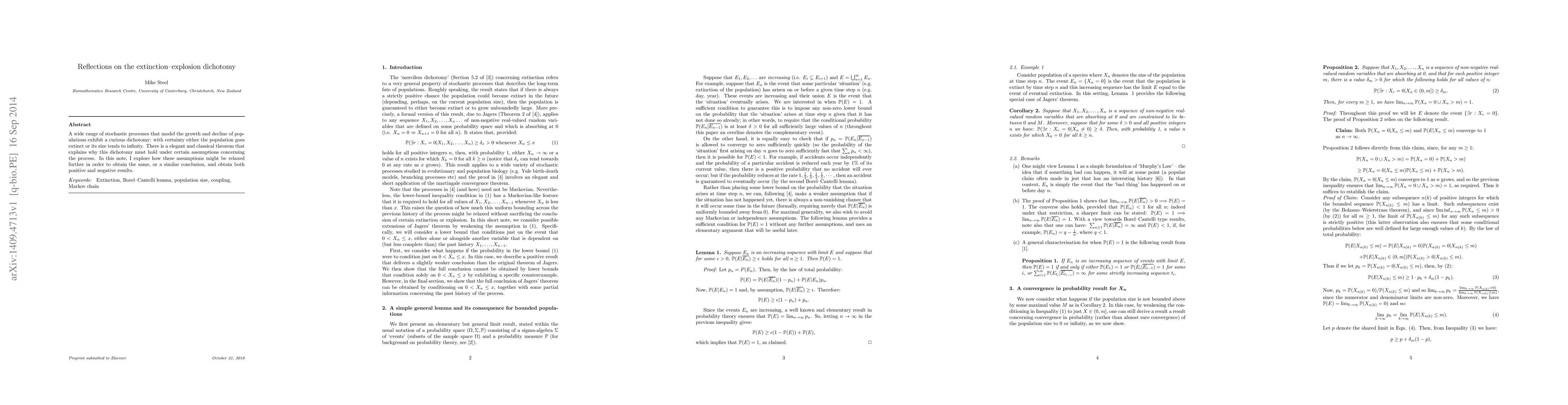 A wide range of stochastic processes that model the growth and decline of populations exhibit a curious dichotomy: with certainty either the population goes extinct or its size tends to infinity. There is a elegant and classical theorem that explains why this dichotomy must hold under certain assumptions concerning the process. In this note, I explore how these assumptions might be relaxed further in order to obtain the same, or a similar conclusion, and obtain both positive and negative results.