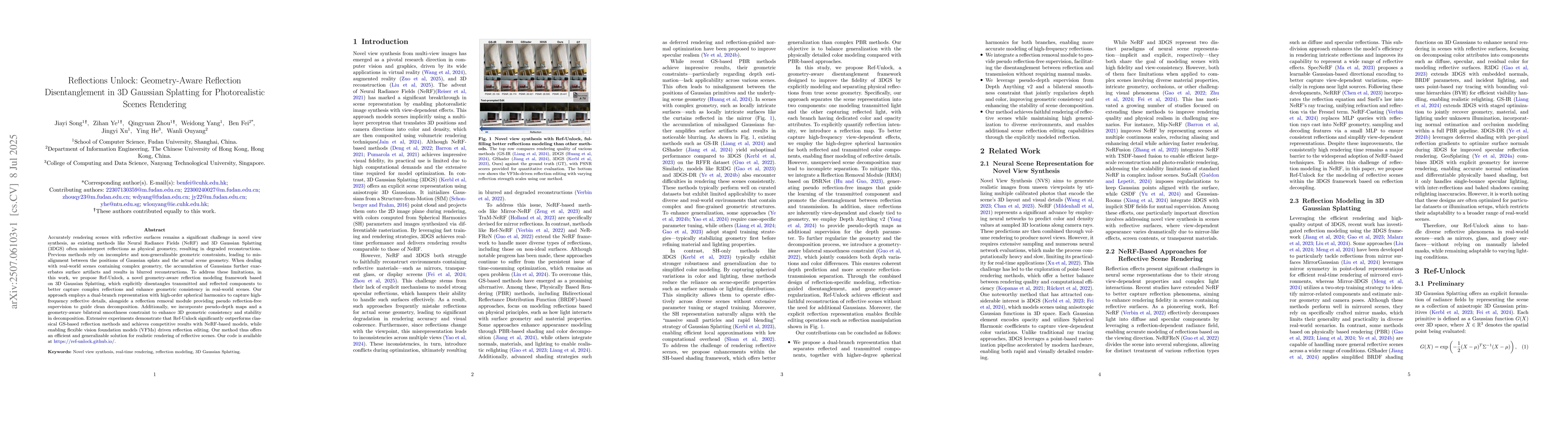 Accurately rendering scenes with reflective surfaces remains a significant challenge in novel view synthesis, as existing methods like Neural Radiance Fields (NeRF) and 3D Gaussian Splatting (3DGS) often misinterpret reflections as physical geometry, resulting in degraded reconstructions. Previous methods rely on incomplete and non-generalizable geometric constraints, leading to misalignment between the positions of Gaussian splats and the actual scene geometry. When dealing with real-world scenes containing complex geometry, the accumulation of Gaussians further exacerbates surface artifacts and results in blurred reconstructions. To address these limitations, in this work, we propose Ref-Unlock, a novel geometry-aware reflection modeling framework based on 3D Gaussian Splatting, which explicitly disentangles transmitted and reflected components to better capture complex reflections and enhance geometric consistency in real-world scenes. Our approach employs a dual-branch representation with high-order spherical harmonics to capture high-frequency reflective details, alongside a reflection removal module providing pseudo reflection-free supervision to guide clean decomposition. Additionally, we incorporate pseudo-depth maps and a geometry-aware bilateral smoothness constraint to enhance 3D geometric consistency and stability in decomposition. Extensive experiments demonstrate that Ref-Unlock significantly outperforms classical GS-based reflection methods and achieves competitive results with NeRF-based models, while enabling flexible vision foundation models (VFMs) driven reflection editing. Our method thus offers an efficient and generalizable solution for realistic rendering of reflective scenes. Our code is available at https://ref-unlock.github.io/.