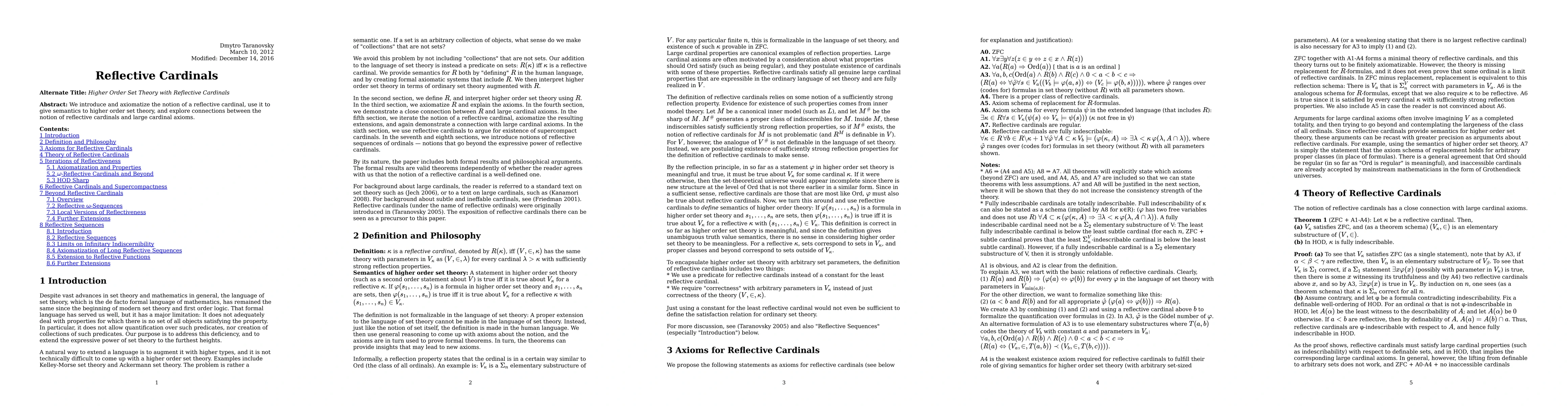 We introduce and axiomatize the notion of a reflective cardinal, use it to give semantics to higher order set theory, and explore connections between the notion of reflective cardinals and large cardinal axioms.