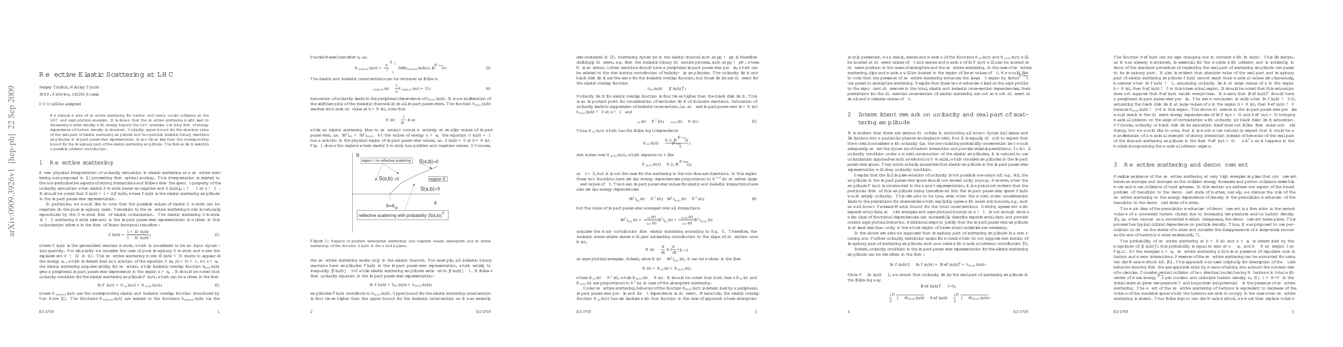 We discuss effects of reflective scattering for hadron and heavy nuclei collisions at the LHC and asymptotical energies. It is shown that the reflective scattering might lead to decreasing matter density with energy beyond the LHC energies. Limiting form of energy dependence of hadron density is obtained. Unitarity upper bound for the absolute value of the real part of elastic scattering amplitude and two-particle inelastic binary reactions amplitudes in impact parameter representation is two times less than the corresponding bound for the imaginary part of the elastic scattering amplitude. The former limit restricts a possible odderon contribution.