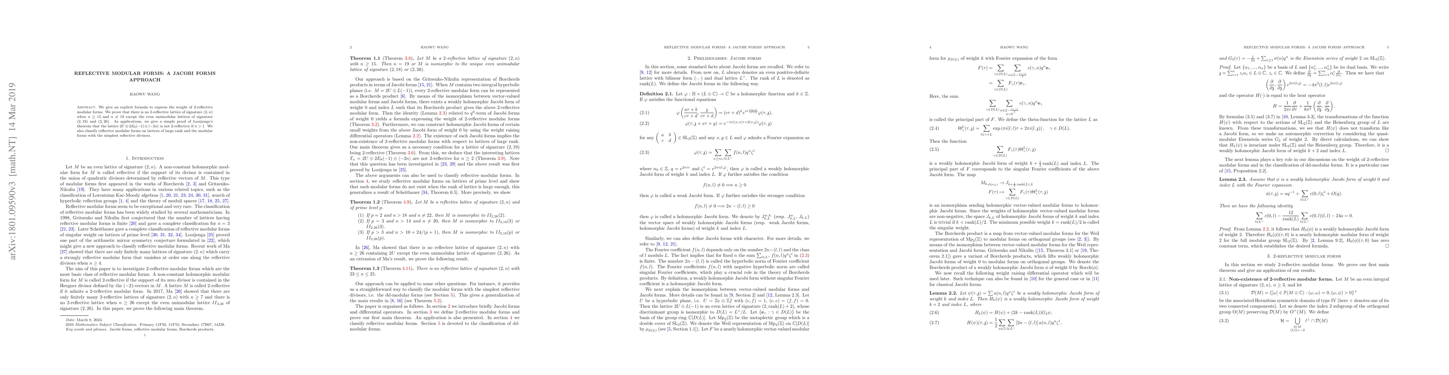 This paper provides an explicit formula for the weight of $2$-reflective modular forms and proves that no $2$-reflective lattices exist for signatures $(2,n)$ when $n\geq 15$ except for specific even unimodular lattices. It also offers a simplified proof of Looijenga's theorem and classifies reflective modular forms on high-rank lattices.