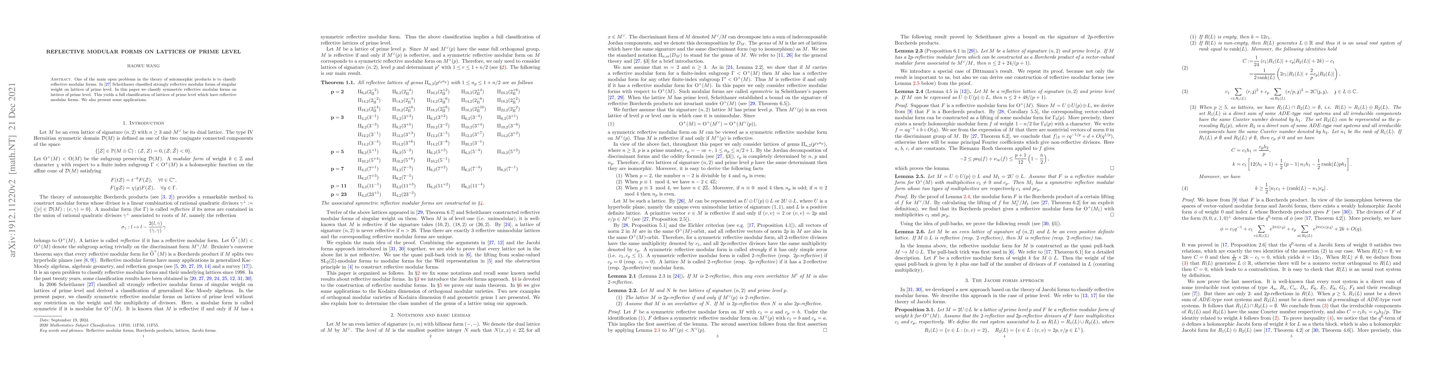 This paper classifies symmetric reflective modular forms on lattices of prime level, completing the classification of reflective modular forms for such lattices and providing applications. The results build upon Scheithauer's prior work on strongly reflective modular forms.