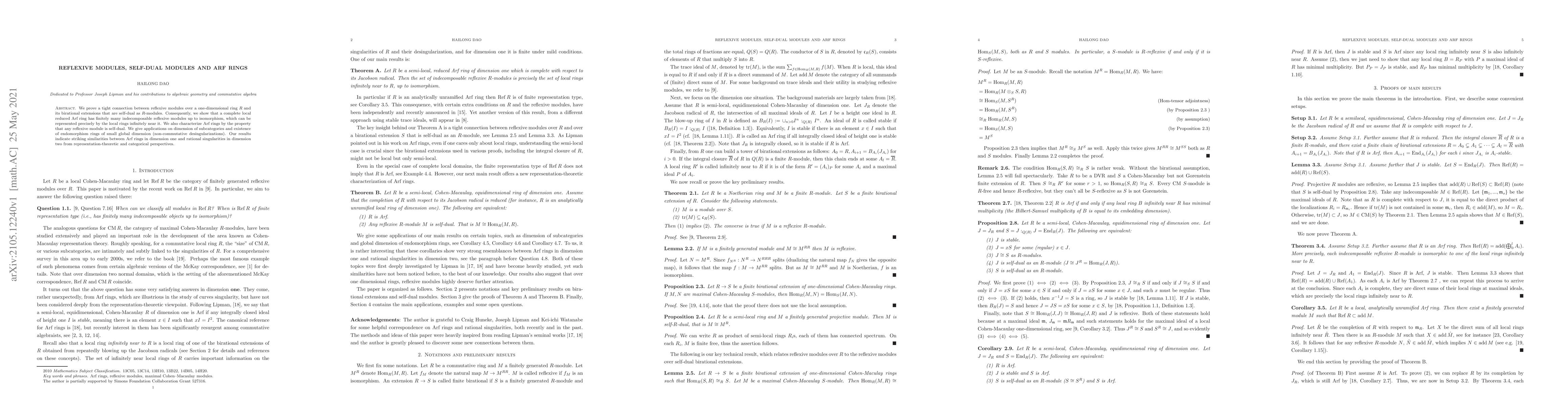 This paper establishes a strong link between reflexive modules and self-dual modules over a one-dimensional ring $R$, and demonstrates that complete local reduced Arf rings have a finite number of indecomposable reflexive modules. It also characterizes Arf rings where any reflexive module is self-dual, and explores applications in dimensions of subcategories and endomorphism rings.