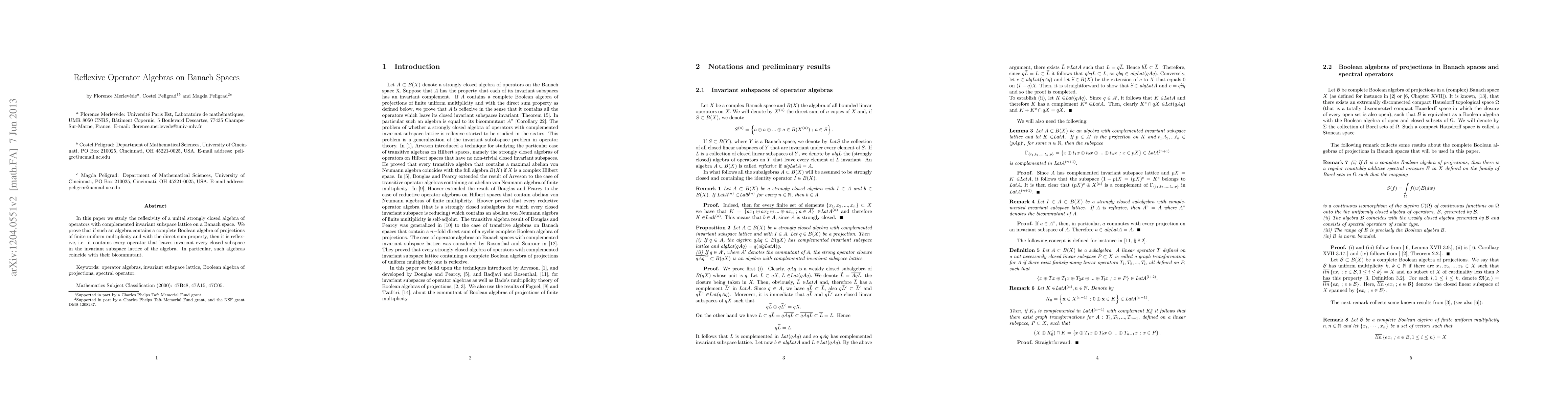 This paper demonstrates that unital strongly closed operator algebras on Banach spaces with complemented invariant subspace lattices are reflexive if they contain a complete Boolean algebra of projections. These algebras coincide with their bicommutants under these conditions.