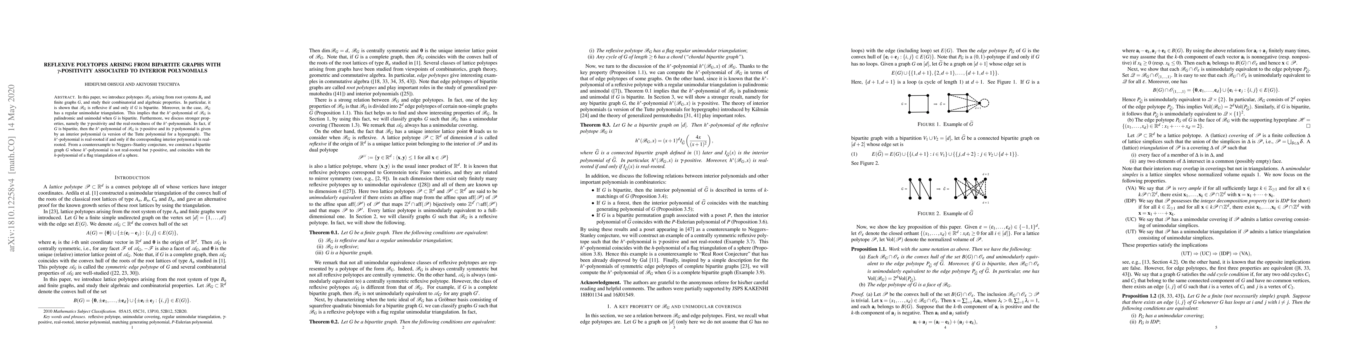 In this paper, we introduce polytopes ${\mathcal B}_G$ arising from root systems $B_n$ and finite graphs $G$, and study their combinatorial and algebraic properties. In particular, it is shown that ${\mathcal B}_G$ is reflexive if and only if $G$ is bipartite. Moreover, in the case, ${\mathcal B}_G$ has a regular unimodular triangulation. This implies that the $h^*$-polynomial of ${\mathcal B}_G$ is palindromic and unimodal when $G$ is bipartite. Furthermore, we discuss stronger properties, namely the $\gamma$-positivity and the real-rootedness of the $h^*$-polynomials. In fact, if $G$ is bipartite, then the $h^*$-polynomial of ${\mathcal B}_G$ is $\gamma$-positive and its $\gamma$-polynomial is given by an interior polynomial (a version of the Tutte polynomial for a hypergraph). The $h^*$-polynomial is real-rooted if and only if the corresponding interior polynomial is real-rooted. From a counterexample to Neggers--Stanley conjecture, we construct a bipartite graph $G$ whose $h^*$-polynomial is not real-rooted but $\gamma$-positive, and coincides with the $h$-polynomial of a flag triangulation of a sphere.