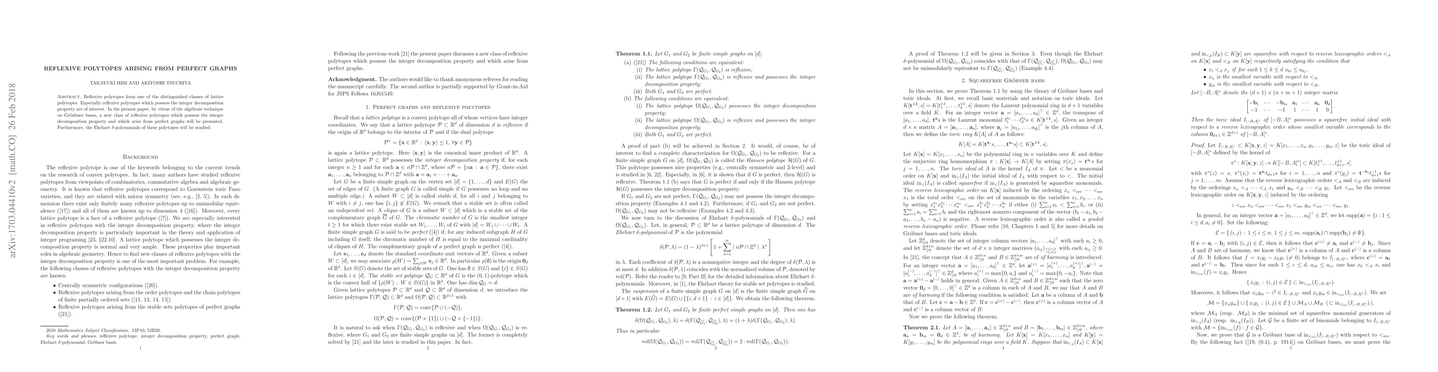This paper introduces a novel class of reflexive polytopes derived from perfect graphs, characterized by the integer decomposition property. The study also explores the associated Ehrhart δ-polynomials using Gröbner bases.