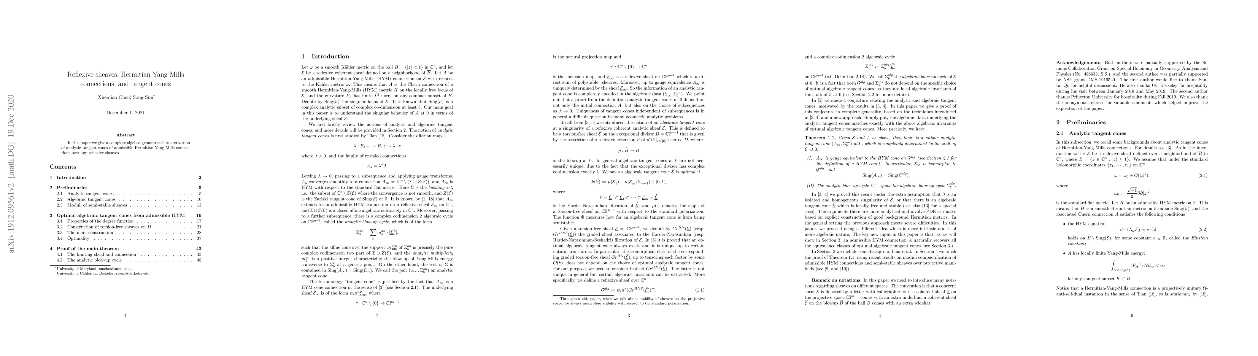 Summary: This paper provides a comprehensive algebro-geometric characterization of analytic tangent cones associated with admissible Hermitian-Yang-Mills connections on reflexive sheaves. It delves into the structural properties and behavior of these tangent cones in the context of reflexive sheaves.