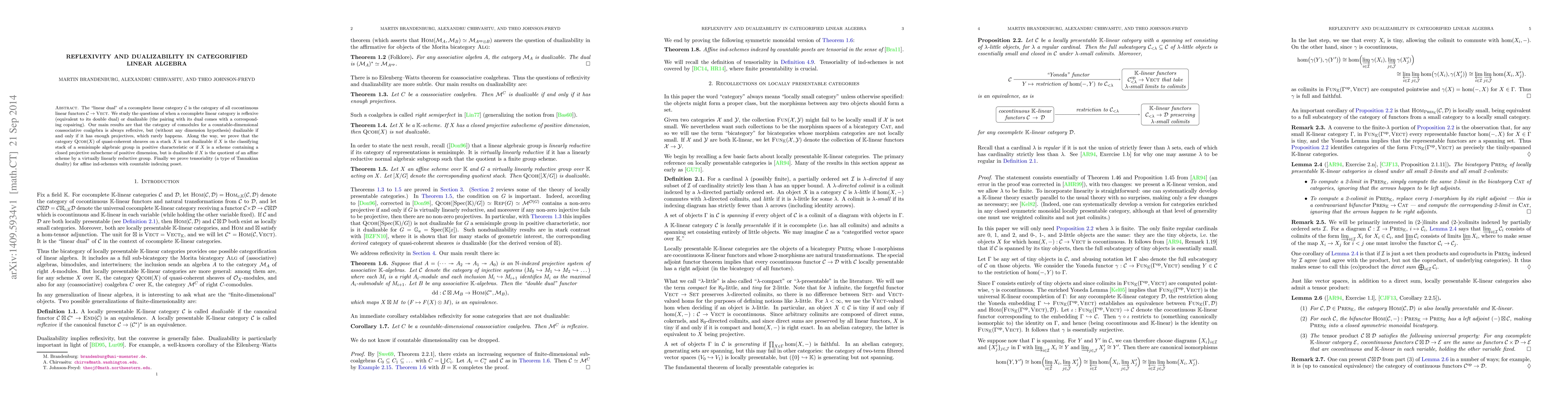 The "linear dual" of a cocomplete linear category $\mathcal C$ is the category of all cocontinuous linear functors $\mathcal C \to \mathrm{Vect}$. We study the questions of when a cocomplete linear category is reflexive (equivalent to its double dual) or dualizable (the pairing with its dual comes with a corresponding copairing). Our main results are that the category of comodules for a countable-dimensional coassociative coalgebra is always reflexive, but (without any dimension hypothesis) dualizable if and only if it has enough projectives, which rarely happens. Along the way, we prove that the category $\mathrm{Qcoh}(X)$ of quasi-coherent sheaves on a stack $X$ is not dualizable if $X$ is the classifying stack of a semisimple algebraic group in positive characteristic or if $X$ is a scheme containing a closed projective subscheme of positive dimension, but is dualizable if $X$ is the quotient of an affine scheme by a virtually linearly reductive group. Finally we prove tensoriality (a type of Tannakian duality) for affine ind-schemes with countable indexing poset.