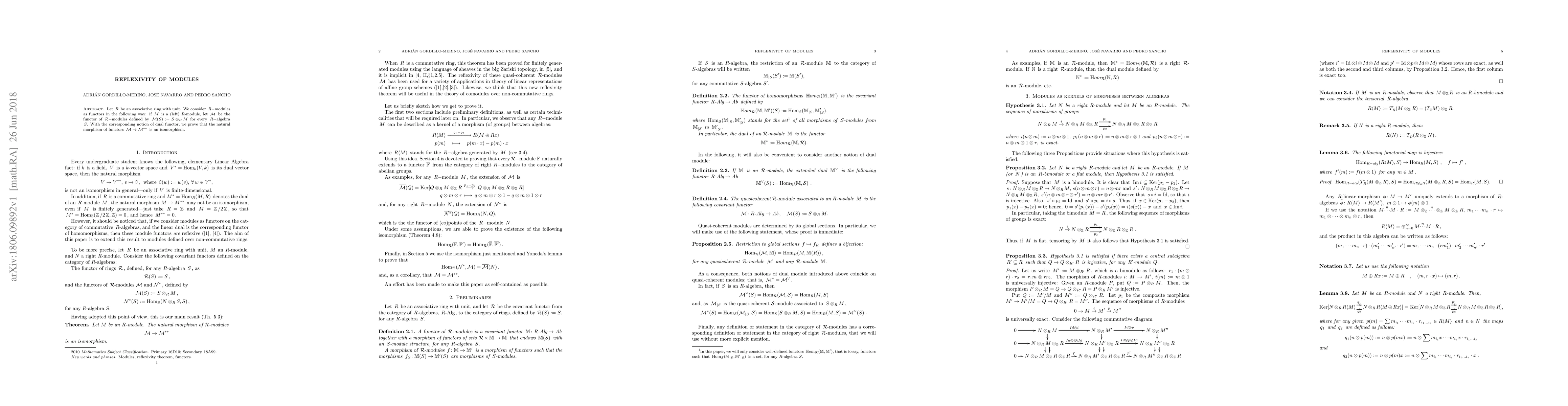 We consider $\,R-$modules as functors in the following way: if $\,M\,$ is a (left) $R$-module, let $\,\mathcal M\,$ be the functor of $\,\mathcal R-$modules defined by $\,\mathcal M(S) := S \otimes_R M\,$ for every $\,R-$algebra $\,S$. With the corresponding notion of dual functor, we prove that the natural morphism of functors $\,\mathcal M\to \mathcal M^{**}\,$ is an isomorphism.