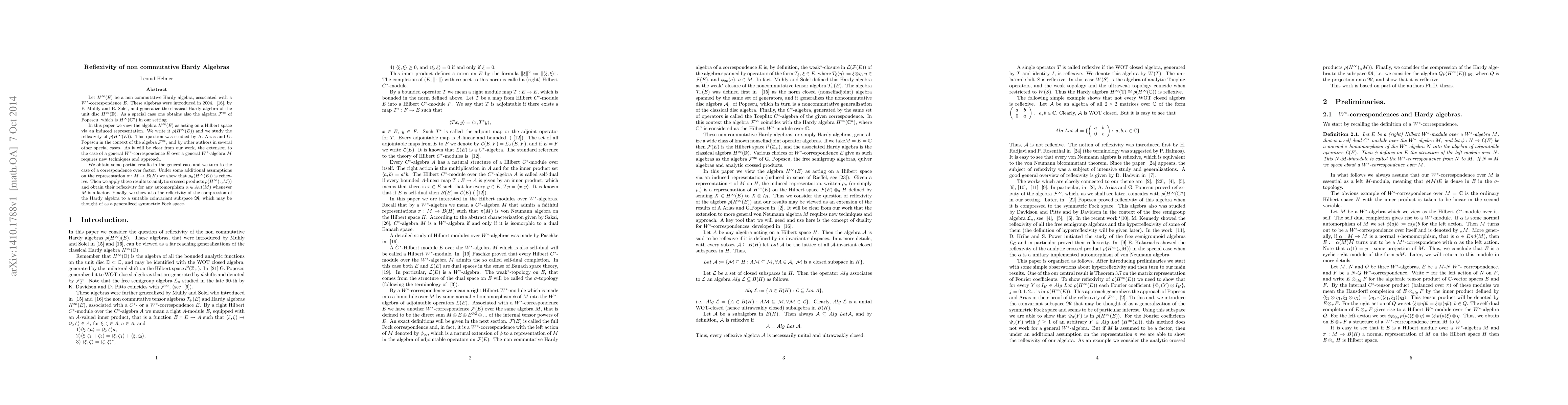Let $H^{\infty}(E)$ be a non commutative Hardy algebra, associated with a $W^*$-correspondence $E$. These algebras were introduced in 2004, ~\cite{MuS3}, by P. Muhly and B. Solel, and generalize the classical Hardy algebra of the unit disc $H^{\infty}(\mathbb{D})$. As a special case one obtains also the algebra $\mathcal{F}^{\infty}$ of Popescu, which is $H^{\infty}(\mathbb{C}^n)$ in our setting. In this paper we view the algebra $H^\infty(E)$ as acting on a Hilbert space via an induced representation $\rho(H^{\infty}(E))$, and we study the reflexivity of $\rho(H^{\infty}(E))$. This question was studied by A. Arias and G. Popescu in the context of the algebra $\mathcal{F}^{\infty}$, and by other authors in several other special cases. As it will be clear from our work, the extension to the case of a general $W^*$-correspondence $E$ over a general $W^*$-algebra $M$ requires new techniques and approach. We obtain some partial results in the general case and we turn to the case of a correspondence over factor. Under some additional assumptions on the representation $\pi:M\rightarrow B(H)$ we show that $\rho_\pi(H^{\infty}(E))$ is reflexive. Then we apply these results to analytic crossed products $\rho(H^{\infty}(\ _{\alpha}M))$ and obtain their reflexivity for any automorphism $\alpha\in Aut(M)$ whenever $M$ is a factor. Finally, we show also the reflexivity of the compression of the Hardy algebra to a suitable coinvariant subspace $\mathfrak{M}$, which may be thought of as a generalized symmetric Fock space.