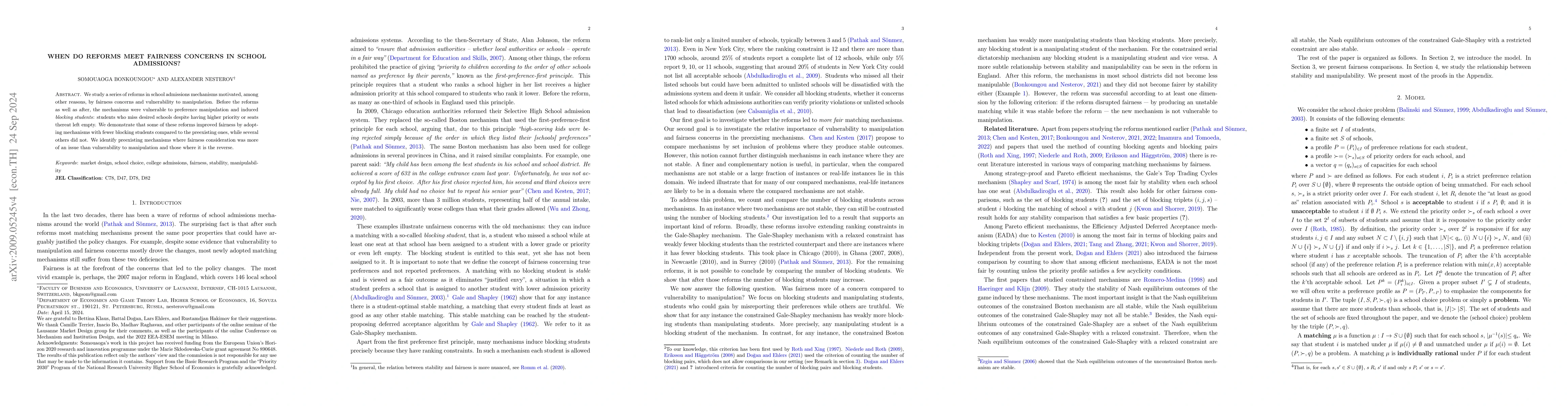 A recent study found that school and college admissions reforms aimed to increase fairness but may still lead to situations where a deserving student is blocked from their preferred institution. The reforms introduced mechanisms more fair than the old system by stability or counting.