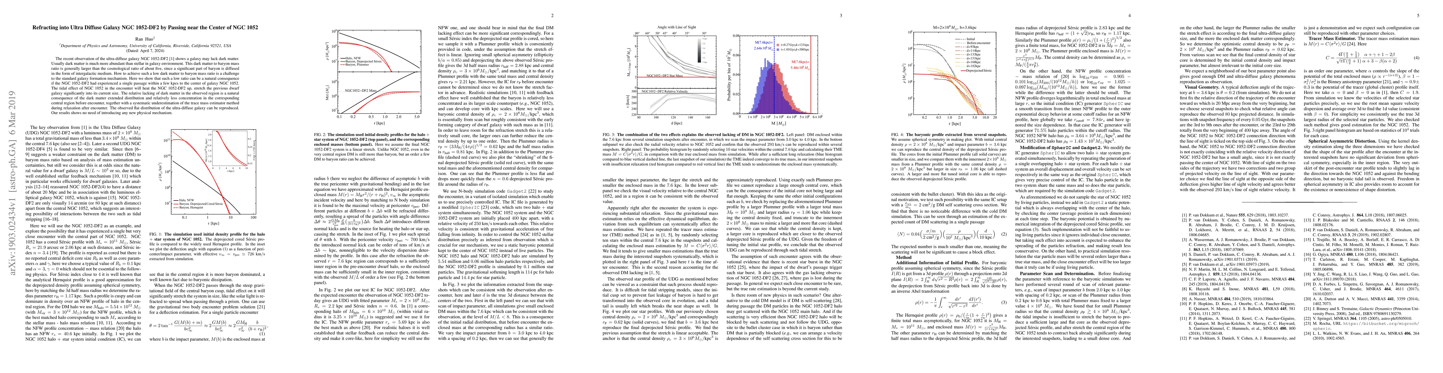 This paper proposes that the ultra-diffuse galaxy NGC 1052-DF2's low dark matter to baryon mass ratio can be explained by a single passage near the center of NGC 1052, which tidally stretched the galaxy and reduced its central dark matter concentration. No new physical mechanisms are required to explain the observed properties.
