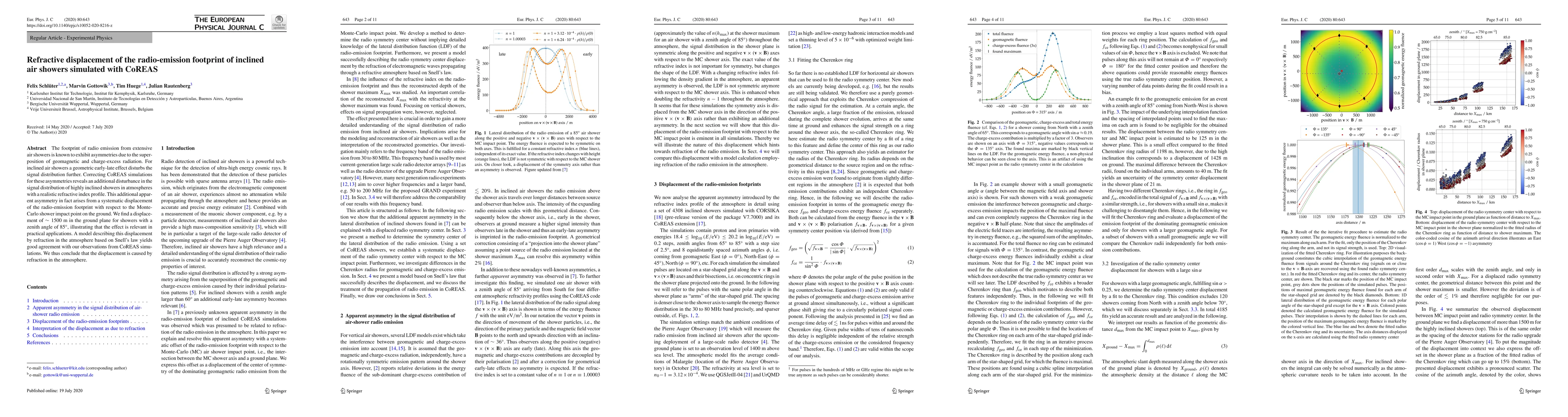 This paper investigates the refractive displacement of radio-emission footprints from inclined air showers, finding a systematic shift of approximately 1500 meters for showers at 85° zenith angles. The study concludes that this displacement is due to atmospheric refraction, as modeled using Snell's law, based on CoREAS simulations.