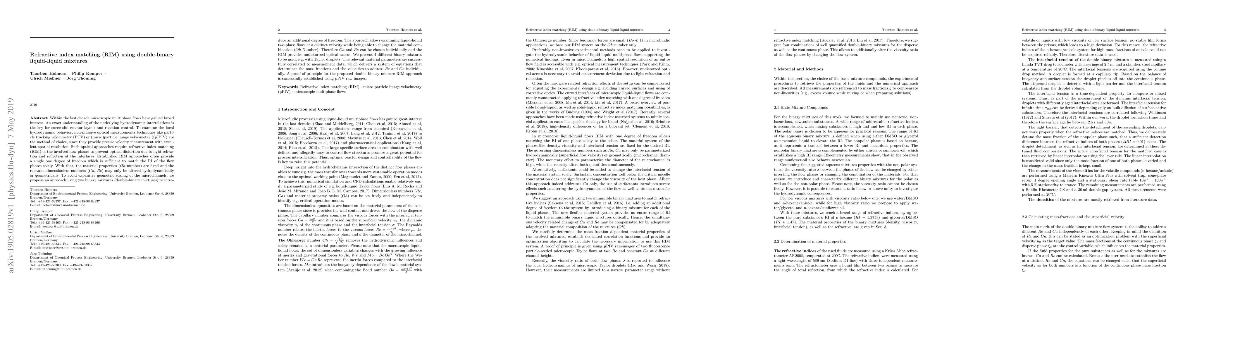 This paper proposes a double-binary liquid-liquid mixture method for refractive index matching (RIM) to study microscopic multiphase flows, providing an additional degree of freedom to adjust material properties. This approach enables precise control over dimensionless numbers (Ca, Re) while maintaining optical clarity, validated through μPIV measurements.