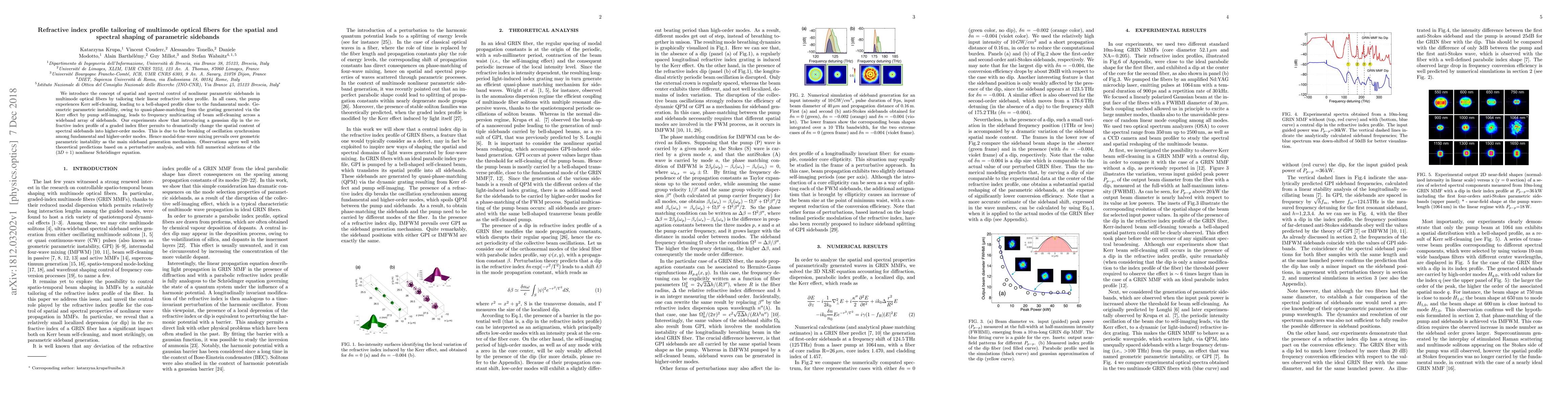 We introduce the concept of spatial and spectral control of nonlinear parametric sidebands in multimode optical fibers by tailoring their linear refractive index profile. In all cases, the pump experiences Kerr self-cleaning, leading to a bell-shaped profile close to the fundamental mode. Geometric parametric instability, owing to quasi-phase-matching from the grating generated via the Kerr effect by pump self-imaging, leads to frequency multicasting of beam self-cleaning across a wideband array of sidebands. Our experiments show that introducing a gaussian dip in the refractive index profile of a graded index fiber permits to dramatically change the spatial content of spectral sidebands into higher-order modes. This is due to the breaking of oscillation synchronism among fundamental and higher-order modes. Hence modal-four-wave mixing prevails over geometric parametric instability as the main sideband generation mechanism. Observations agree well with theoretical predictions based on a perturbative analysis, and with full numerical solutions of the (3D + 1) nonlinear Schrodinger equation.