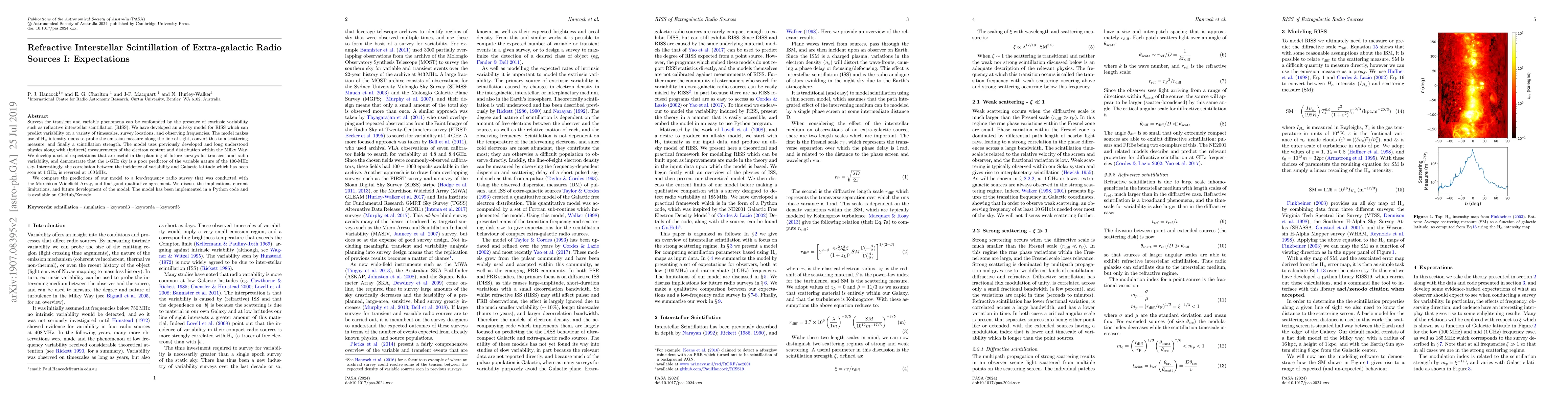 This paper develops an all-sky model to predict refractive interstellar scintillation (RISS) affecting extra-galactic radio sources, using Halpha maps and electron content data. The model reveals that the 1-GHz sky poorly predicts variability at 100 MHz, and the correlation with Galactic latitude is reversed at lower frequencies.