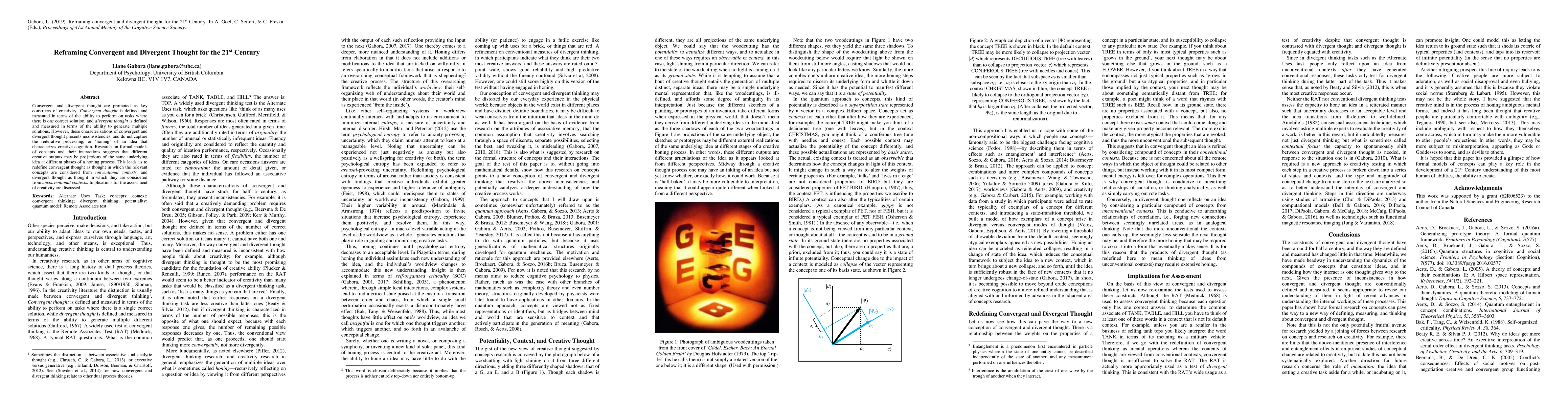 Convergent thought is defined and measured in terms of the ability to perform on tasks where there is a single correct solution, and divergent thought is defined and measured in terms of the ability to generate multiple different solutions. However, this characterization of them presents inconsistencies, and despite that they are promoted as key constructs of creativity, they do not capture the capacity to reiteratively modify an idea in light of new perspectives arising out of an overarching conceptual framework. Research on formal models of concepts and their interactions suggests that different creative outputs may be projections of the same underlying idea at different phases of this kind of 'honing' process. This leads us to redefine convergent thought as thought in which the relevant concepts are considered from conventional contexts, and divergent thought as thought in which they are considered from unconventional contexts. Implications for the assessment of creativity are discussed.