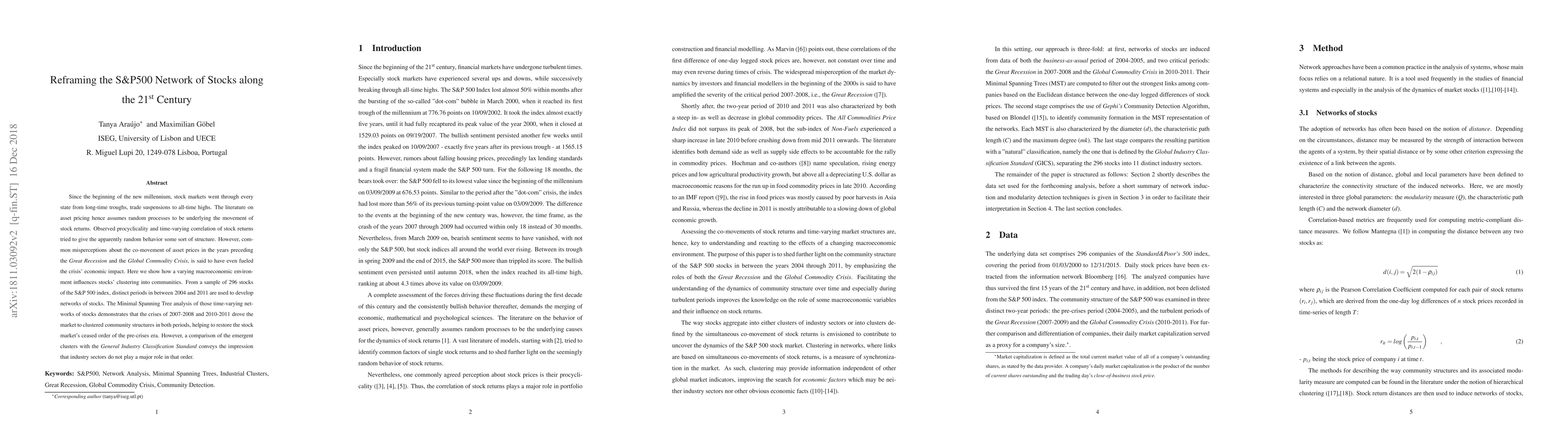 Since the beginning of the new millennium, stock markets went through every state from long-time troughs, trade suspensions to all-time highs. The literature on asset pricing hence assumes random processes to be underlying the movement of stock returns. Observed procyclicality and time-varying correlation of stock returns tried to give the apparently random behavior some sort of structure. However, common misperceptions about the co-movement of asset prices in the years preceding the \emph{Great Recession} and the \emph{Global Commodity Crisis}, is said to have even fueled the crisis' economic impact. Here we show how a varying macroeconomic environment influences stocks' clustering into communities. From a sample of 296 stocks of the S\&P 500 index, distinct periods in between 2004 and 2011 are used to develop networks of stocks. The Minimal Spanning Tree analysis of those time-varying networks of stocks demonstrates that the crises of 2007-2008 and 2010-2011 drove the market to clustered community structures in both periods, helping to restore the stock market's ceased order of the pre-crises era. However, a comparison of the emergent clusters with the \textit{General Industry Classification Standard} conveys the impression that industry sectors do not play a major role in that order.