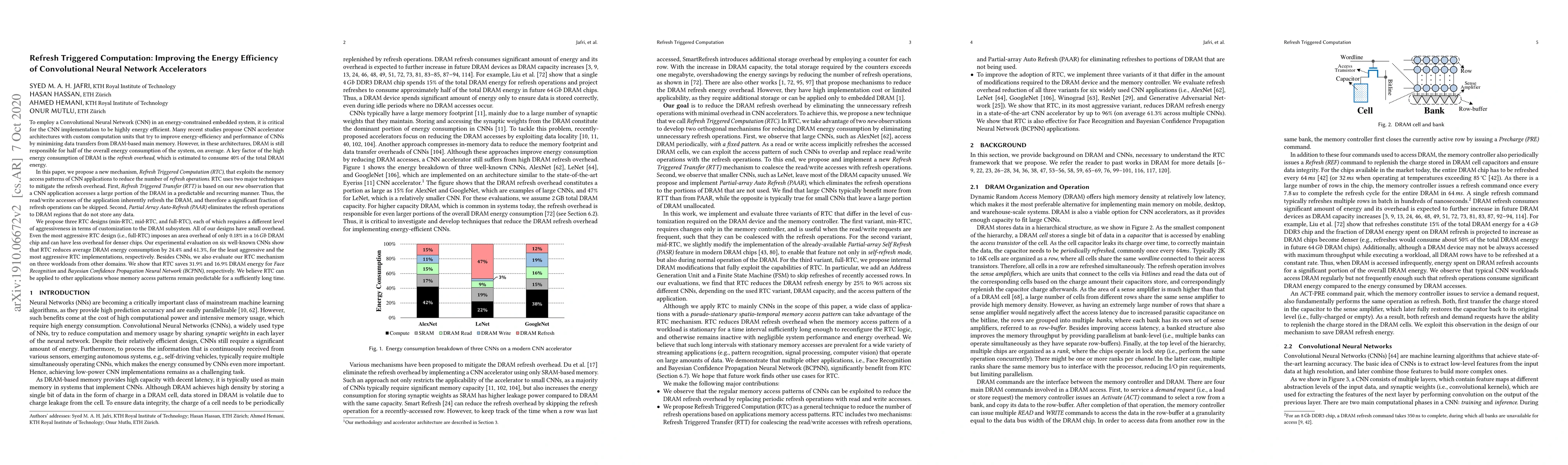 This research paper proposes Refresh Triggered Computation (RTC), a mechanism to reduce DRAM energy consumption in CNN accelerators, achieving up to 61.3% reduction in average DRAM energy consumption for certain CNNs.