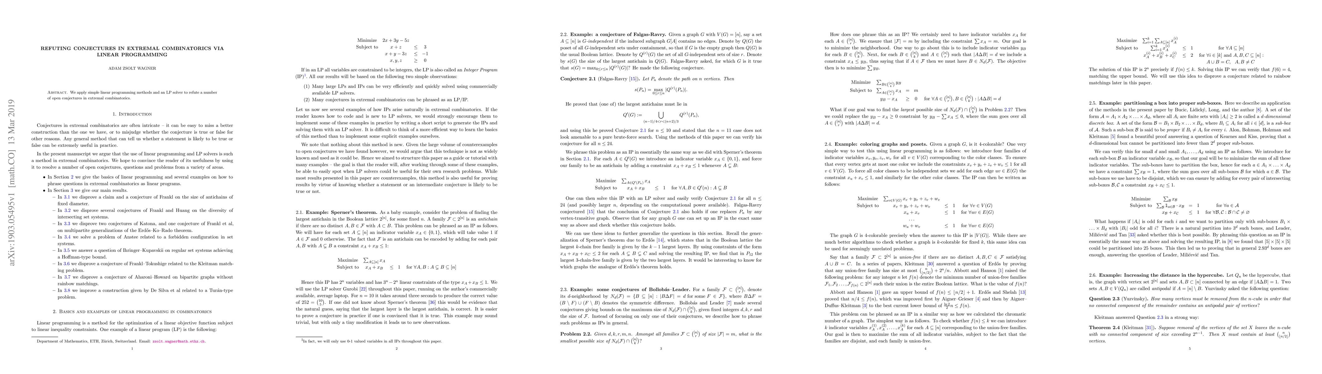 We apply simple linear programming methods and an LP solver to refute a number of open conjectures in extremal combinatorics.