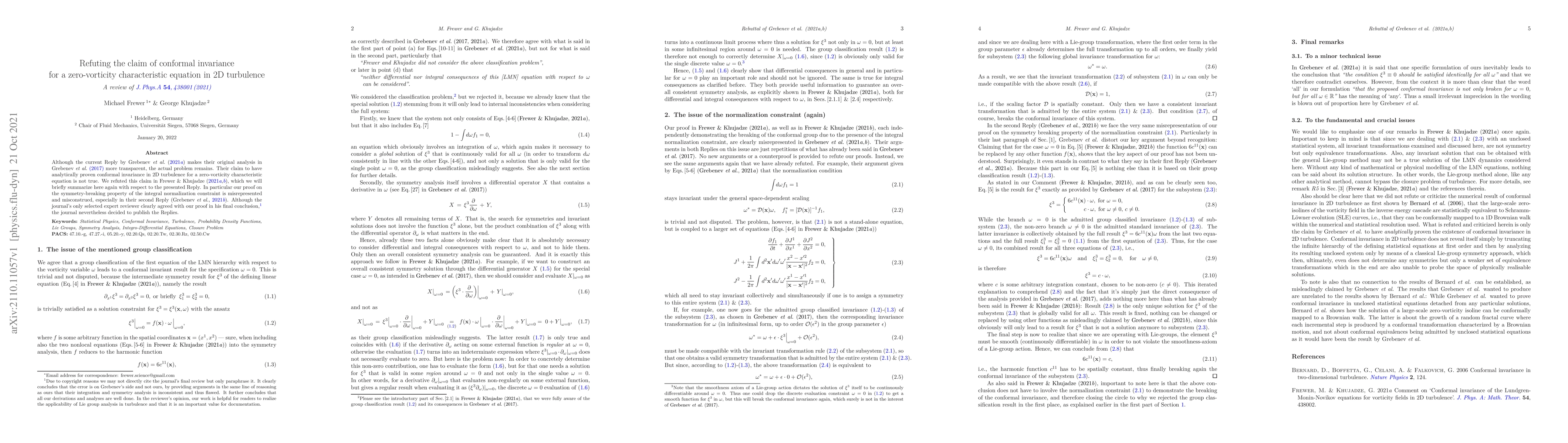 Although the current Reply by Grebenev et al. (2021a) makes their original analysis in Grebenev et al. (2017) more transparent, the actual problem remains. Their claim to have analytically proven conformal invariance in 2D turbulence for a zero-vorticity characteristic equation is not true. We refuted this claim in Frewer & Khujadze (2021a,b), which we will briefly summarize here again with respect to the presented Reply. In particular our proof on the symmetry-breaking property of the integral normalization constraint is misrepresented and misconstrued, especially in their second Reply (Grebenev et al., 2021b). Although the journal's only selected expert reviewer clearly agreed with our proof in his final conclusion, the journal nevertheless decided to publish the Replies.