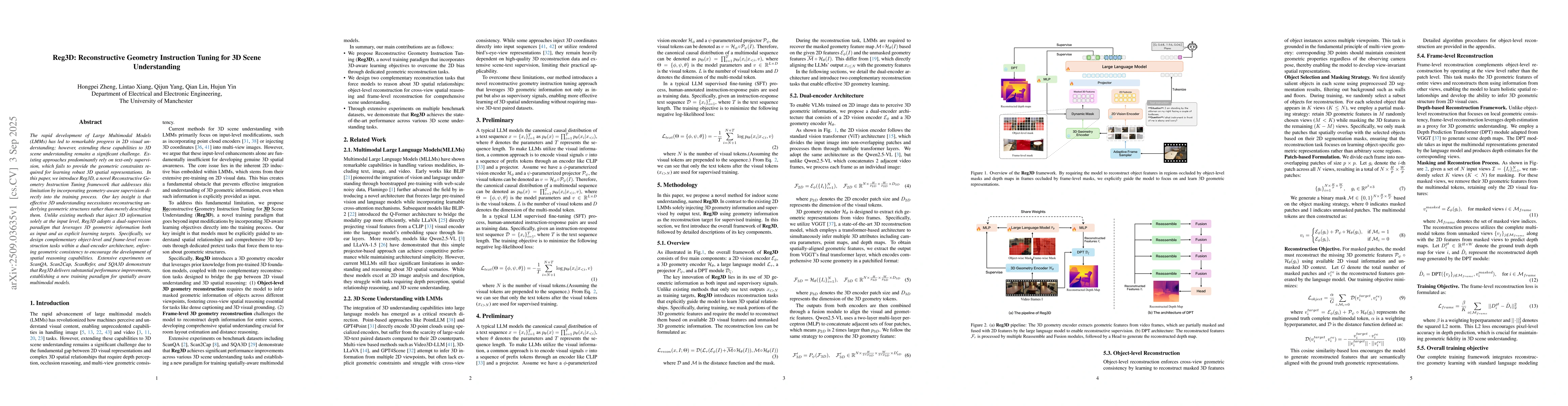 The rapid development of Large Multimodal Models (LMMs) has led to remarkable progress in 2D visual understanding; however, extending these capabilities to 3D scene understanding remains a significant challenge. Existing approaches predominantly rely on text-only supervision, which fails to provide the geometric constraints required for learning robust 3D spatial representations. In this paper, we introduce Reg3D, a novel Reconstructive Geometry Instruction Tuning framework that addresses this limitation by incorporating geometry-aware supervision directly into the training process. Our key insight is that effective 3D understanding necessitates reconstructing underlying geometric structures rather than merely describing them. Unlike existing methods that inject 3D information solely at the input level, Reg3D adopts a dual-supervision paradigm that leverages 3D geometric information both as input and as explicit learning targets. Specifically, we design complementary object-level and frame-level reconstruction tasks within a dual-encoder architecture, enforcing geometric consistency to encourage the development of spatial reasoning capabilities. Extensive experiments on ScanQA, Scan2Cap, ScanRefer, and SQA3D demonstrate that Reg3D delivers substantial performance improvements, establishing a new training paradigm for spatially aware multimodal models.