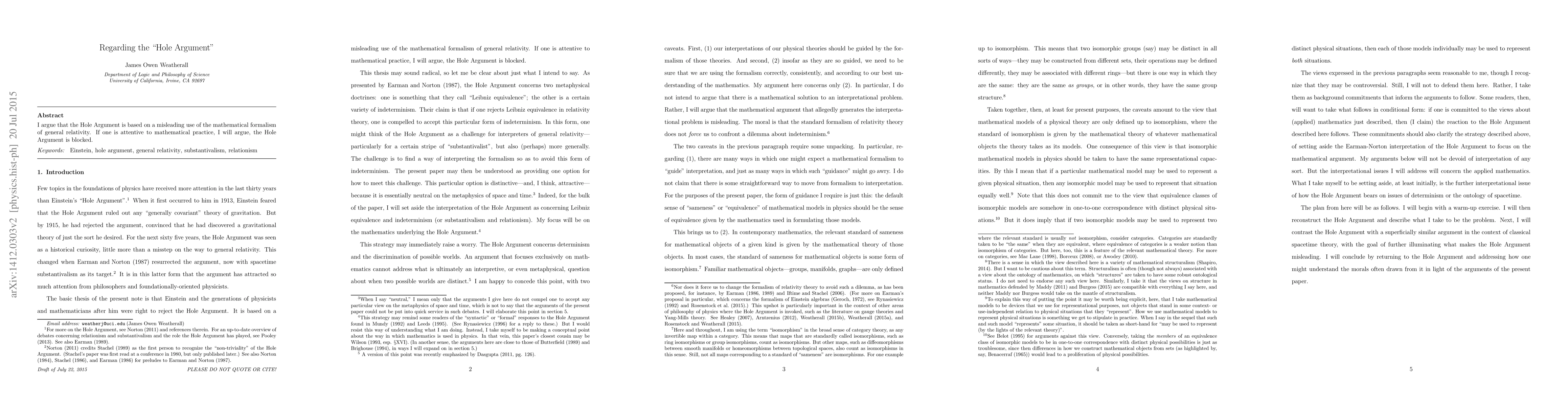 Summary: This paper contends that the Hole Argument in general relativity is flawed due to a misunderstanding of its mathematical formalism. By focusing on proper mathematical practices, the argument's validity is undermined.