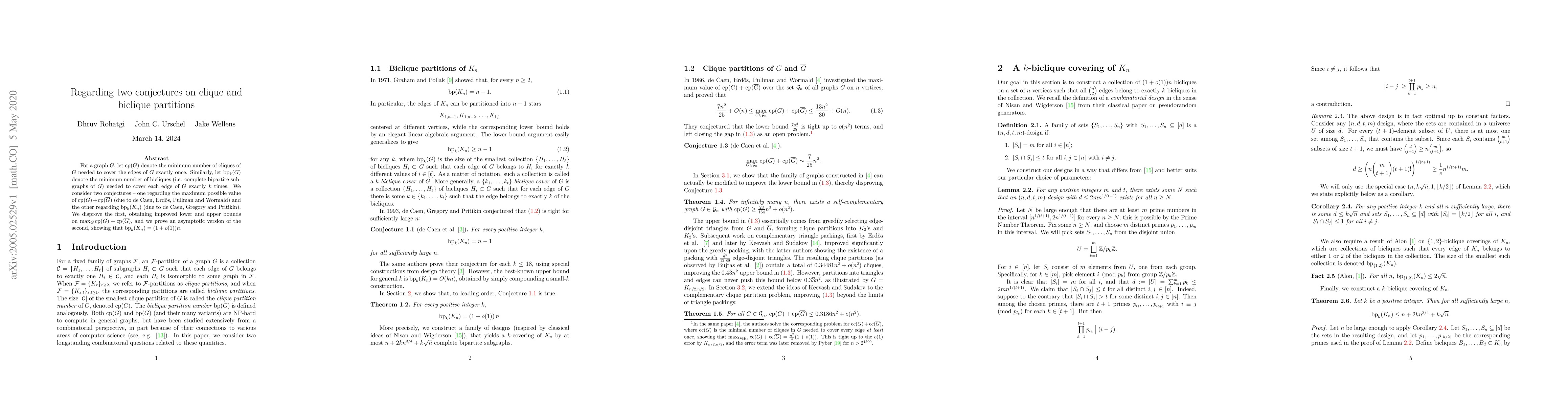 The paper disproves a conjecture on clique partitions and proves an asymptotic version of another related conjecture regarding biclique partitions in complete graphs, providing new bounds for these problems.
